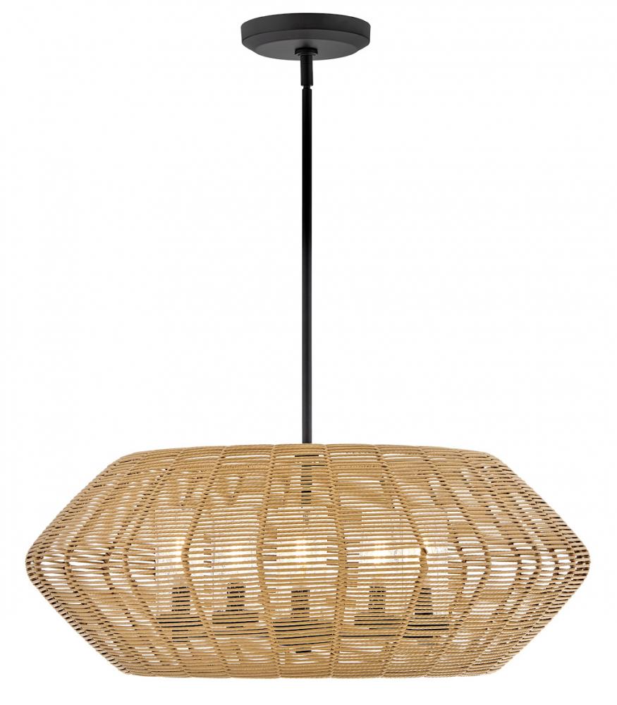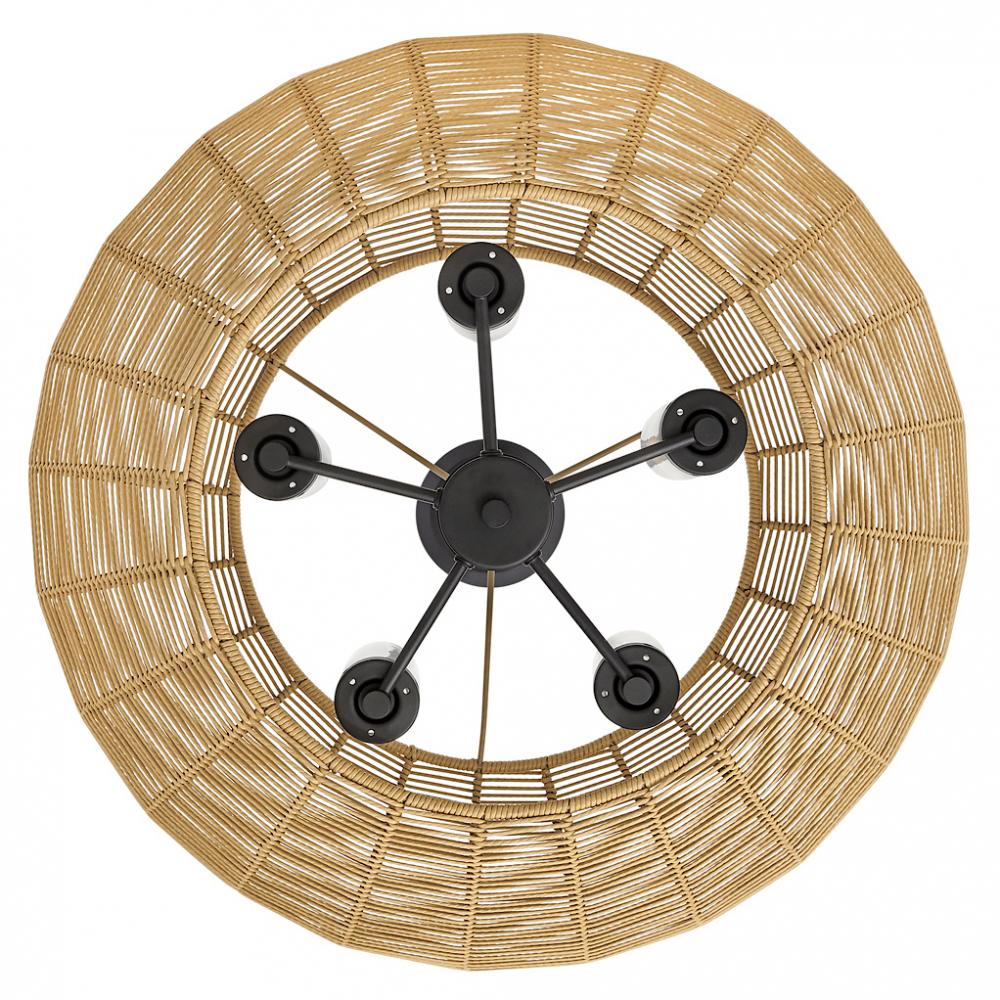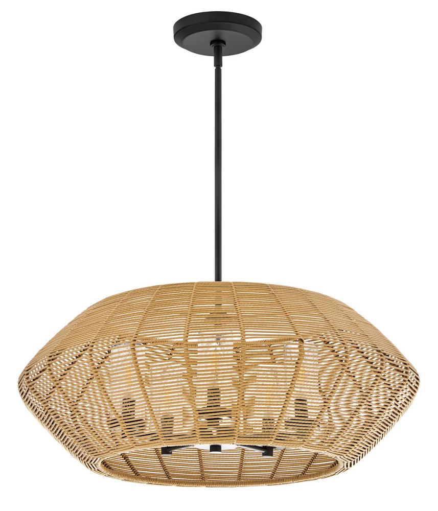 Luca's coastal vibe is permeated with a slightly exotic edge. The bold silhouette showcases a robust, weather-resistant, woven drum shade and candelabra lamps enclosed in clear, seedy glass for plenty of functional light. Offered in a variety of finish options. Luca is part of the Lisa McDennon Collection.