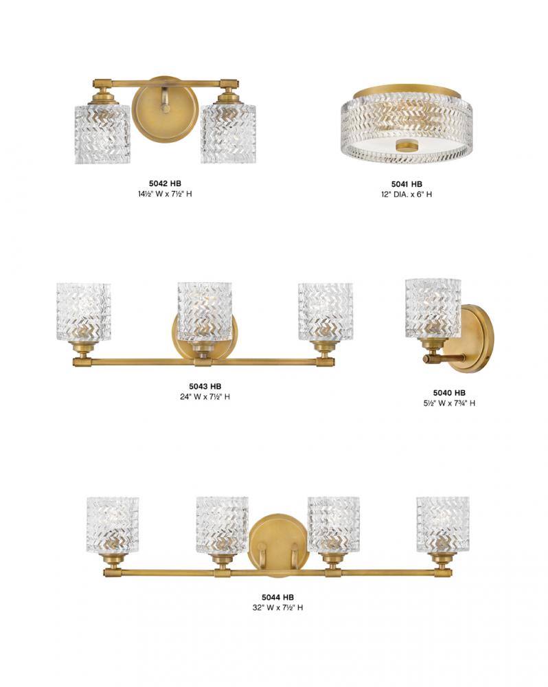 Traditional elegance with a modern edge defines Elle’s graceful design. Rich chevron cut glass provides interesting light refraction and is a dramatic focal point whether the light is on or off. The gleaming metal finish adds to the glam design that gives a touch of radiance to any space.