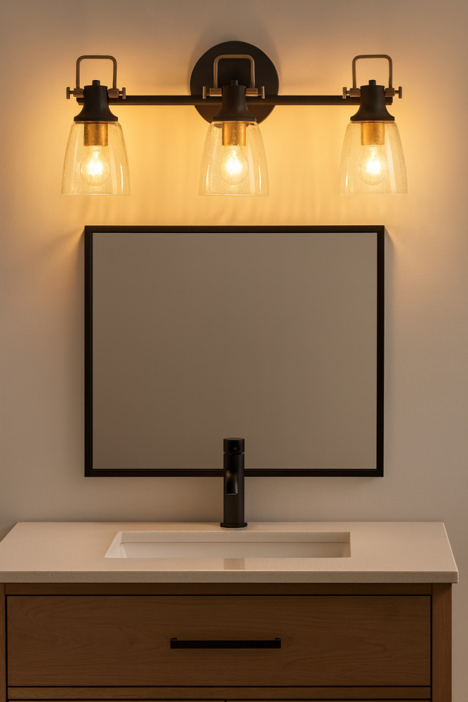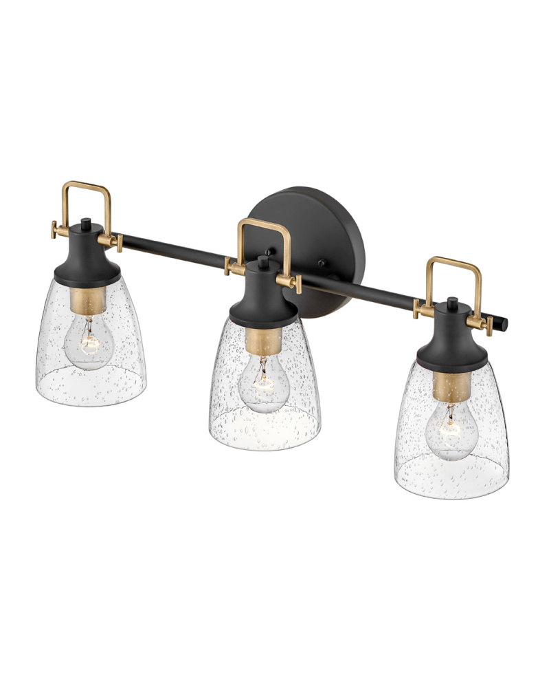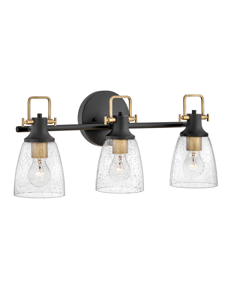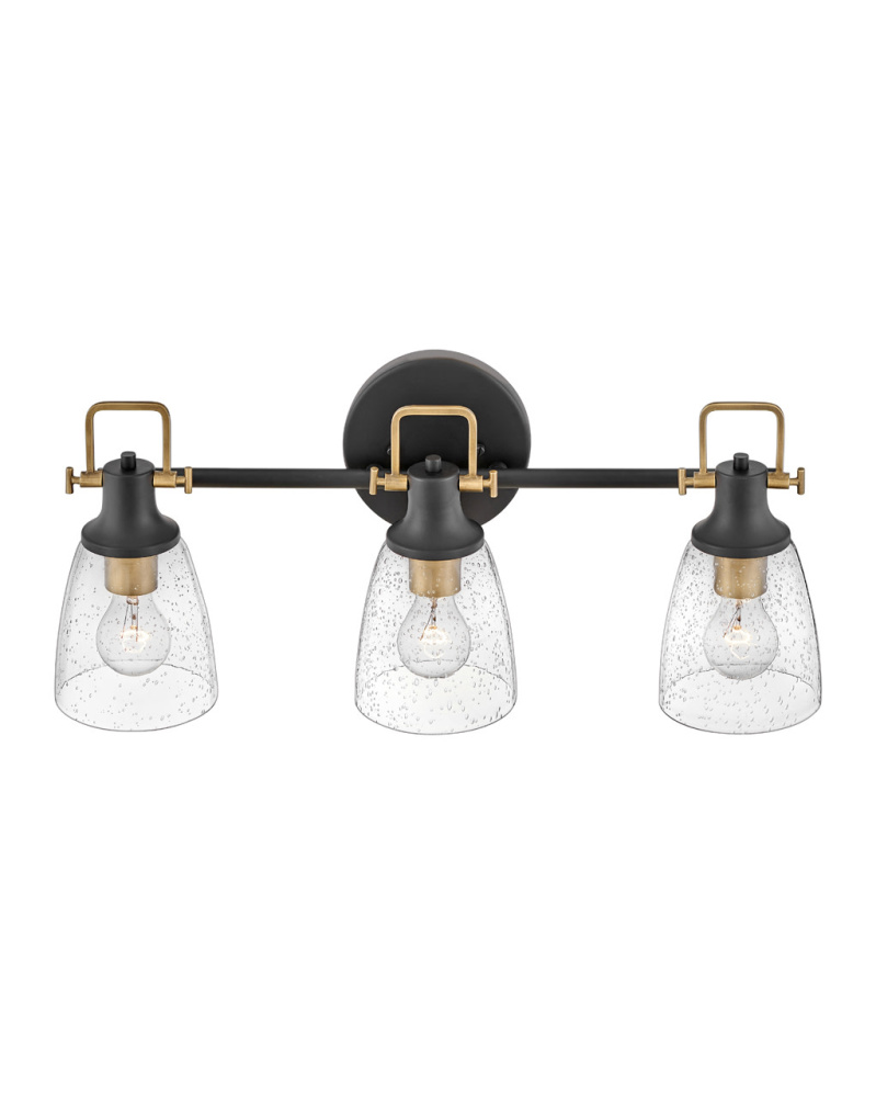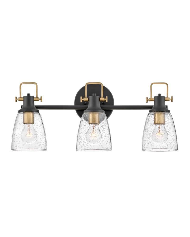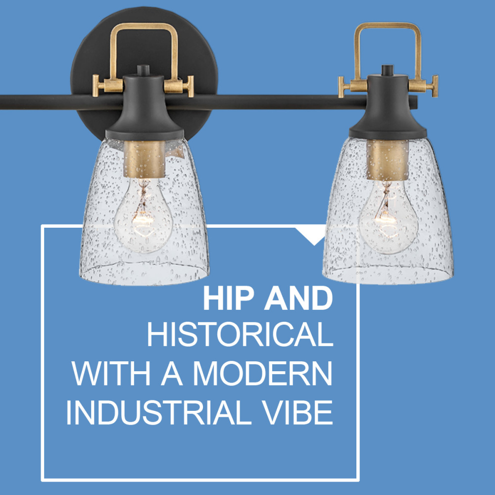 With style elements that blend both hip and historical, Easton exudes a modern industrial vibe. Bold clear seedy glass shades pair with a distinctive top yoke and vintage-inspired knobs for a robust silhouette.