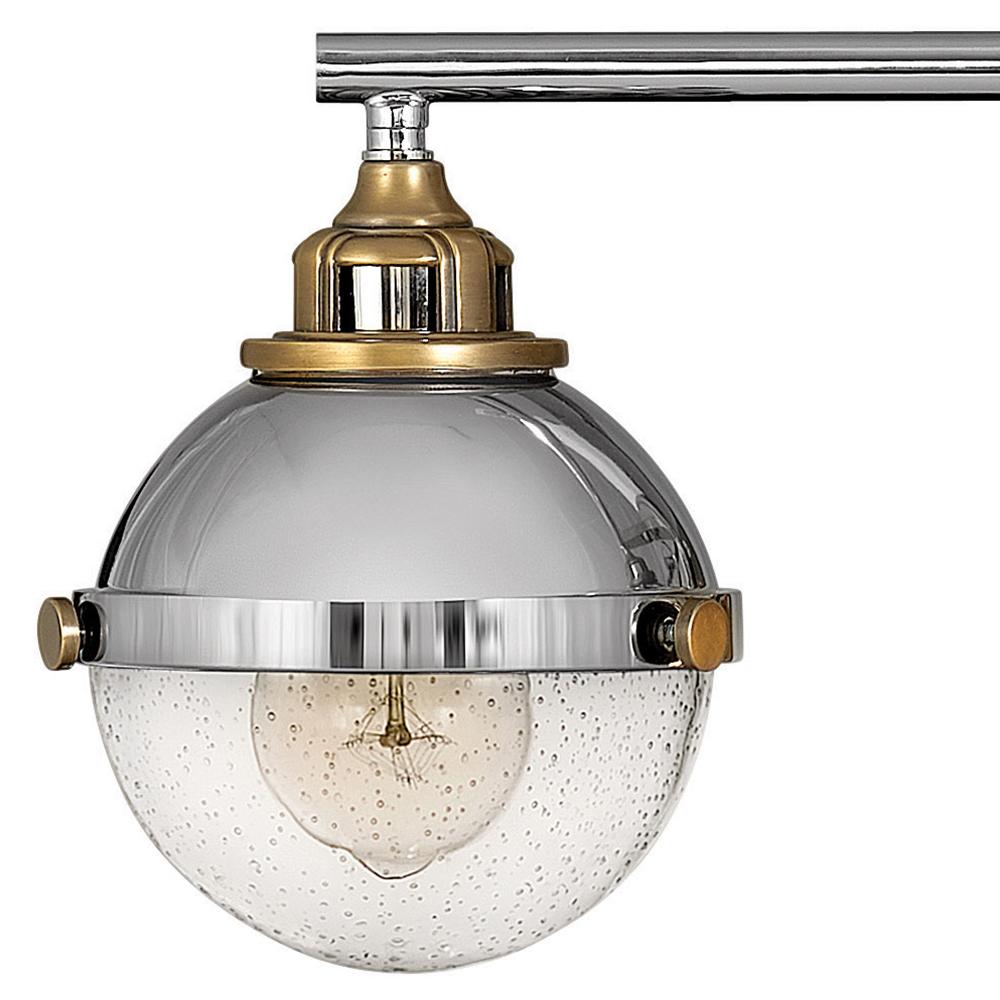 Fletcher’s chic vibe transcends style boundaries. A seamless dome shade features a cast-fitter and an elegant capture ring that secures the clear seedy glass with decorative cast knobs. Spanning vintage to industrial, classic to transitional, Fletcher seamlessly unifies any decor declaration.