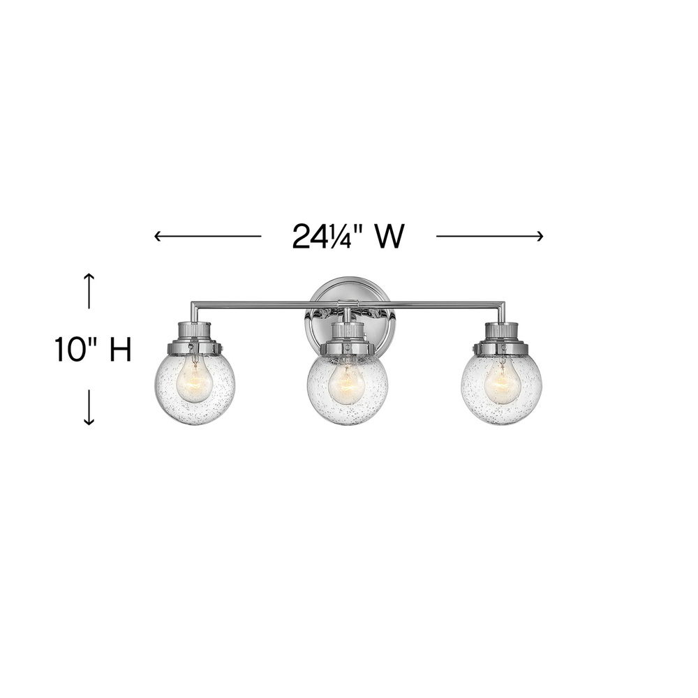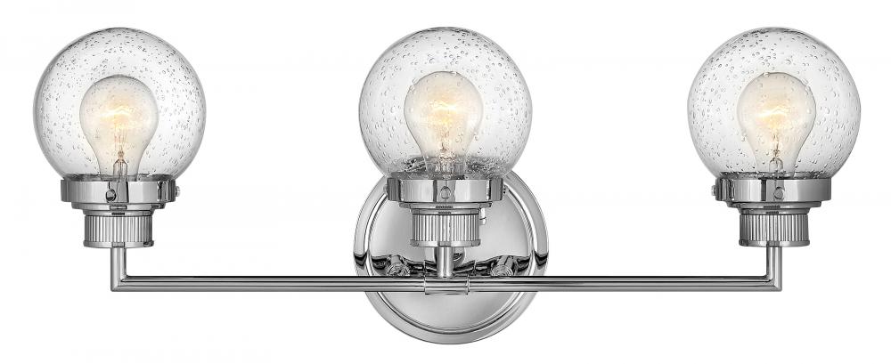 Poppy features clear glass spheres that bubble out of the refined, ribbed Chrome or Heritage Brass fitters to create a simple, yet sophisticated silhouette. An elegant, stepped backplate and crisp crossbar anchor this airy design. Poppy showcases mid-century style with a spectacular spin.