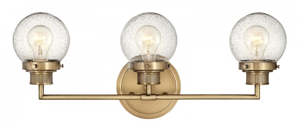 Poppy features clear glass spheres that bubble out of the refined, ribbed Chrome or Heritage Brass fitters to create a simple, yet sophisticated silhouette. An elegant, stepped backplate and crisp crossbar anchor this airy design. Poppy showcases mid-century style with a spectacular spin.