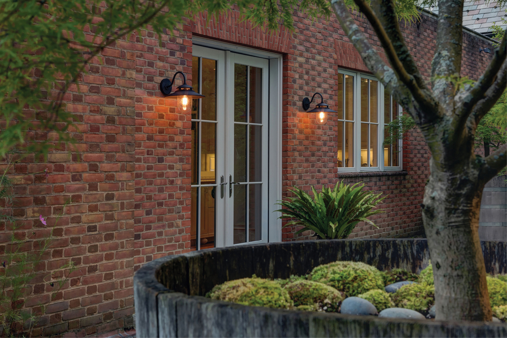 Industrial-inspired Atwell recalls turn-of-the-century American factory lighting. Aged Zinc and Oil Rubbed Bronze finish options reinforce its vintage silhouette. Clear seedy glass and authentic details like gooseneck arms and bespoke backplate enhance Atwell’s nostalgic appeal.