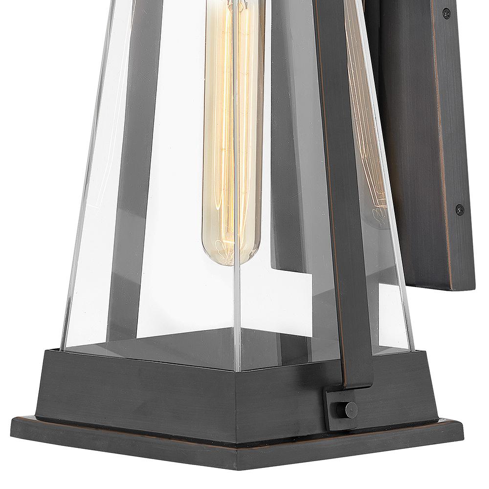 Arcadia smartly transforms a classic carriage lantern into fresh, transitional design with bold features complemented by striking tapered glass. Constructed of durable aluminum in an Aged Copper Bronze finish, Arcadia is a statement-making style that will instantly enhance any exterior. Ideal for vintage filament bulbs.