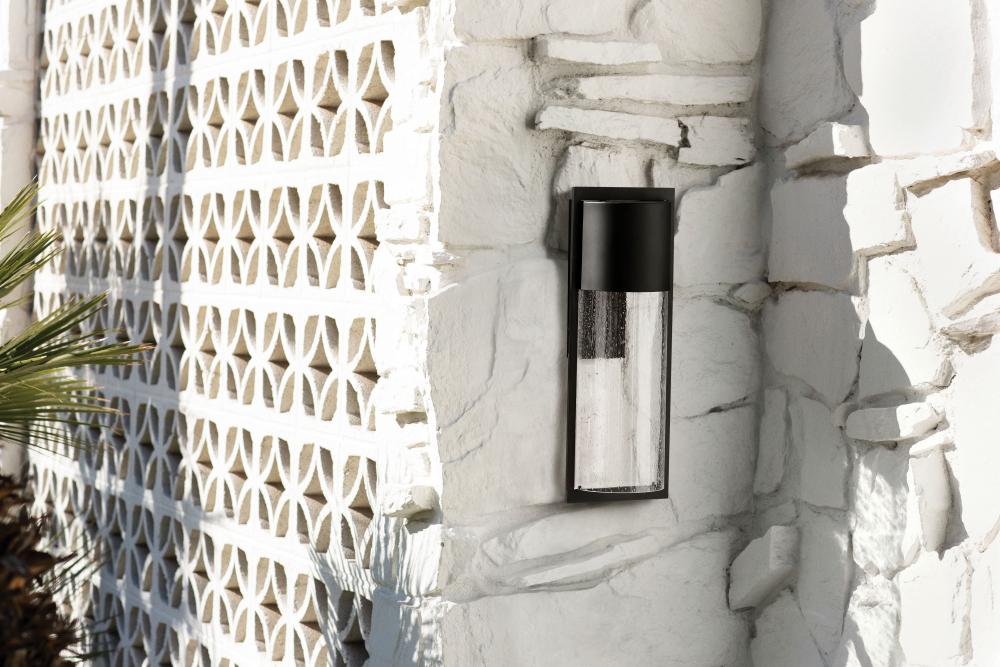 Shelter’s minimalist style in aluminum creates a chic, dramatic statement as the light from above grazes through its clear seedy glass. Shelter comes standard Dark Sky compliant.
