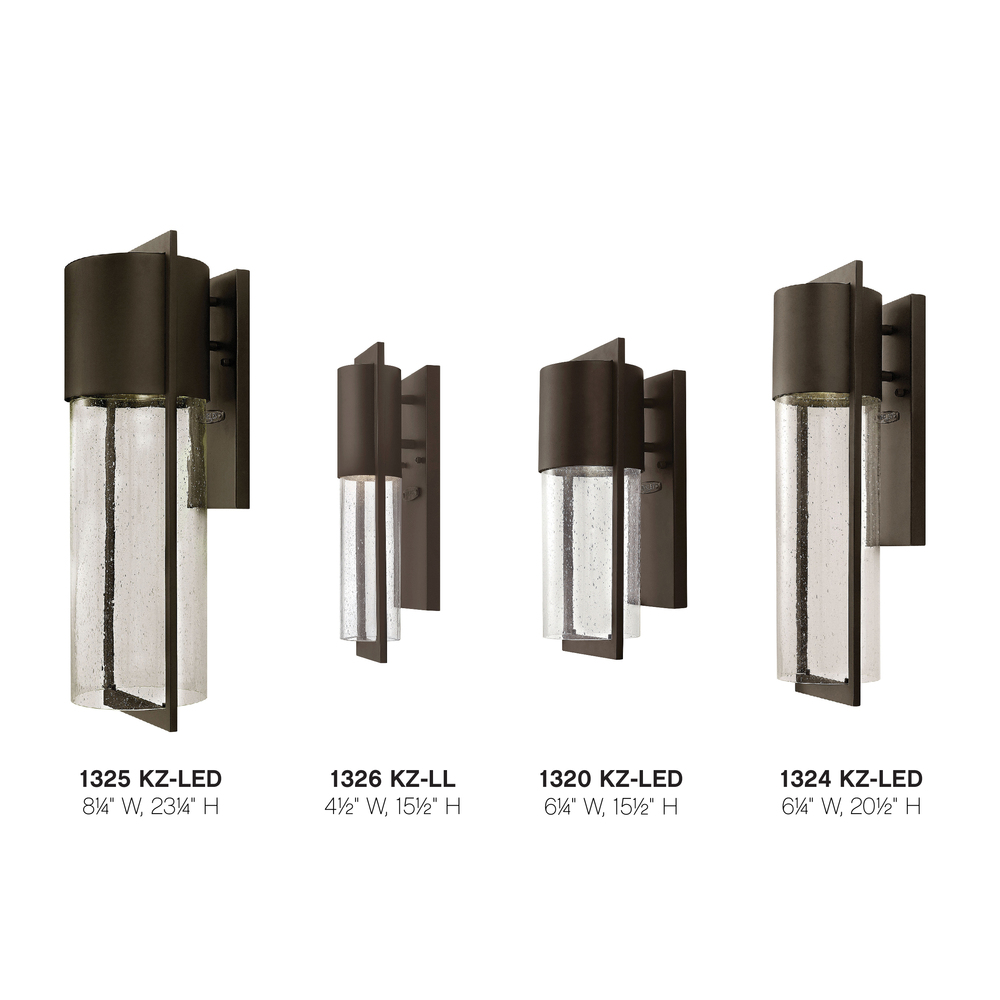 Shelter’s minimalist style in aluminum creates a chic, dramatic statement as the light from above grazes through its clear seedy glass. Shelter comes standard Dark Sky compliant.