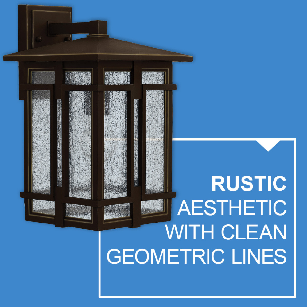 Tucker is study in symmetry with clean geometric lines and proportions reinforced throughout its cast aluminum construction. The sturdy Museum Black or Oil Rubbed Bronze finish and clear seedy glass inspire a rustic lodge aesthetic.