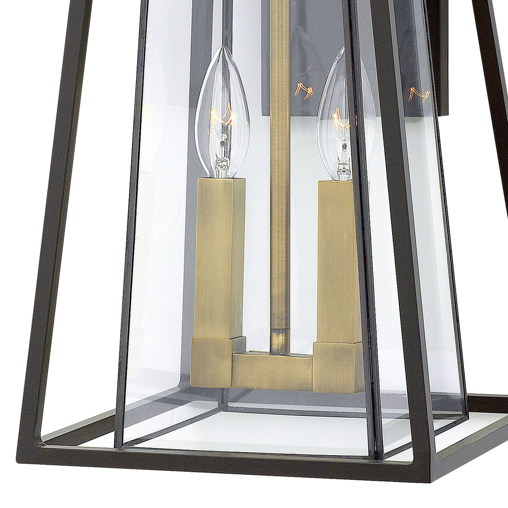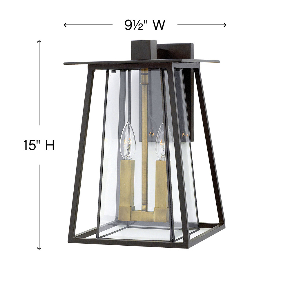 Walker has roots in the American West with its large scale, strong angular lines and no-nonsense style. The sturdy aluminum and brass construction features a two-tone finish, adding a transitional flair to its minimalist shape. A welded outer form frames an inner clear, bound glass shade. At home on the range, in a mountain cabin or creating a mid-century statement, this flexible style complements many façades.