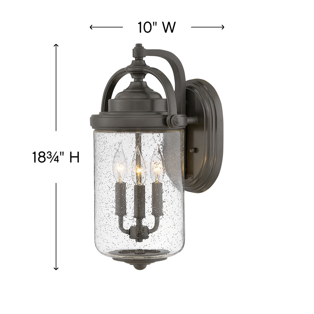 Vintage knobs, graceful curves and oversized clear, seedy glass all give Willoughby the sense of a classic lantern style. Blending Coastal Elements with a traditional silhouette, the Willoughby is a welcoming addition to any outdoor space. The Oil Rubbed Bronze finish is resistant to rust and corrosion with a 5-year warranty.