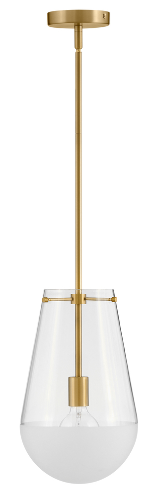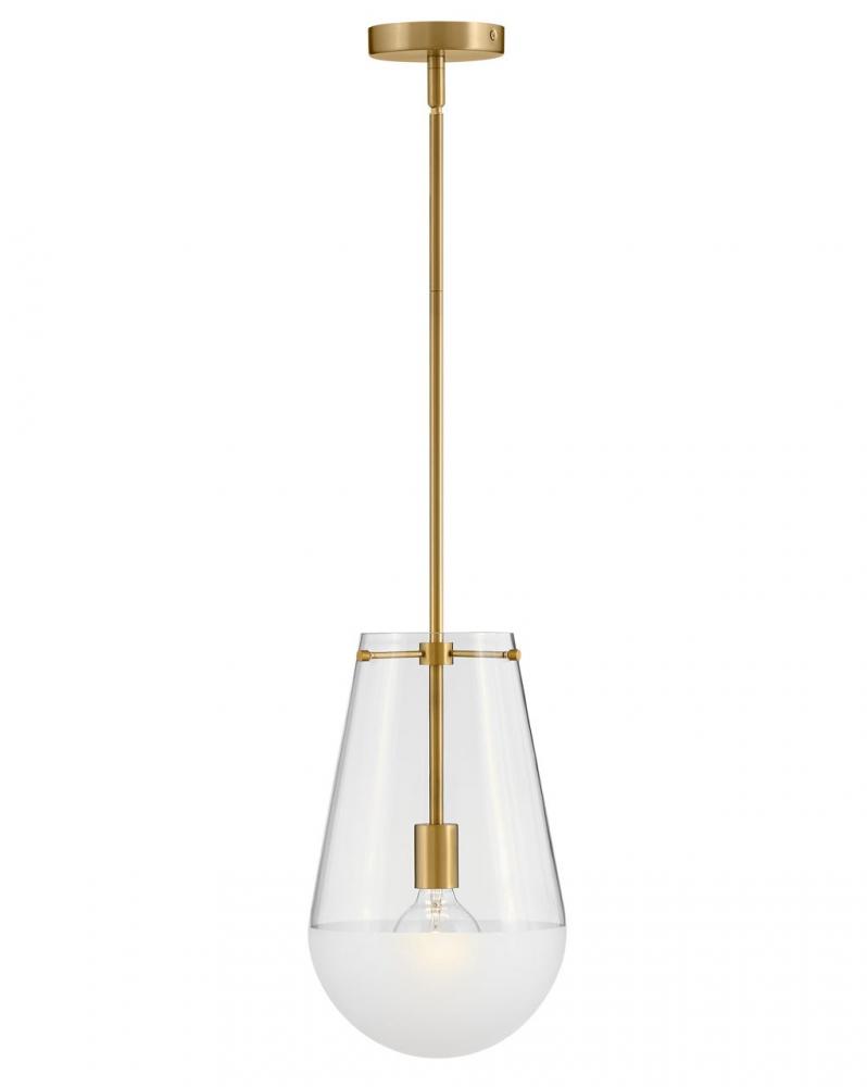 Beck's transitional style is reinforced by a smooth Lacquered Brass or Black finish paired with an etch-dipped glass shade offering texture and visual interest.