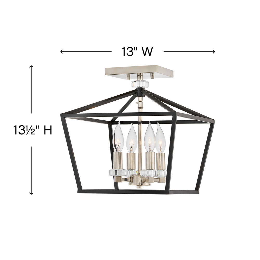 For a classic statement-maker, Stinson hits the mark. A robust open and airy cage, designed for maximum impact in Distressed Brass or Black with Polished Nickel finish, is accompanied by refined sparkling crystal accents to create the perfect mix of traditional appeal and industrial panache.