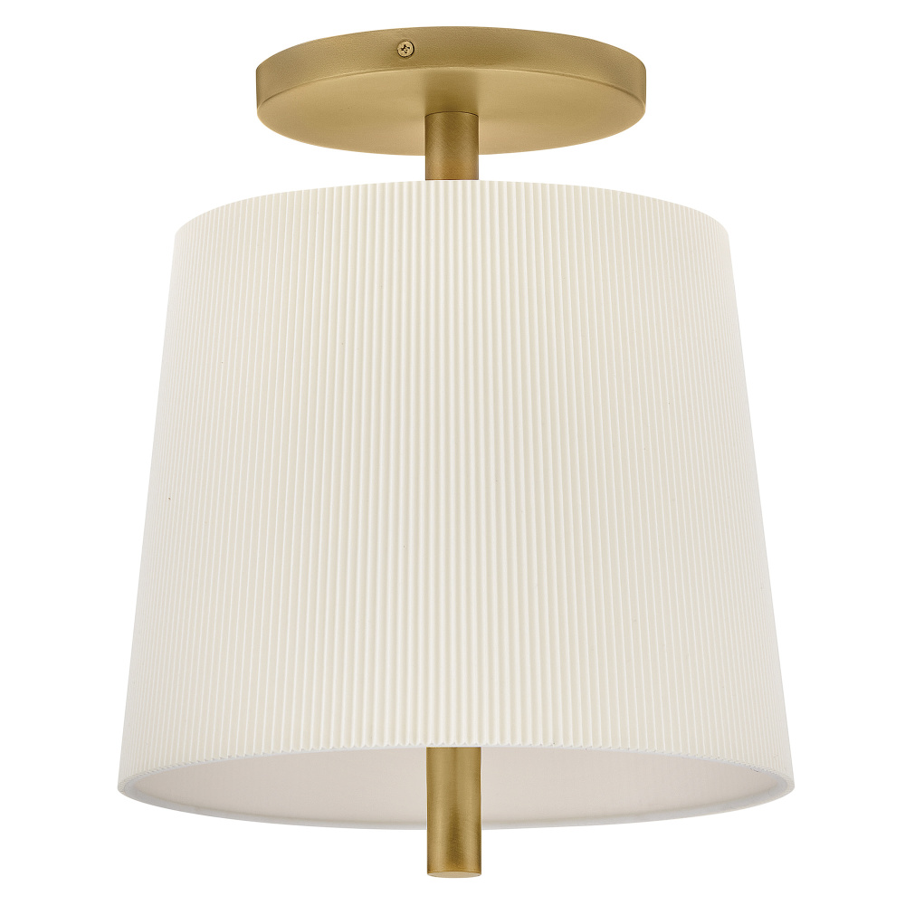 A structured design with a touch of Americana, Clive’s tailored shade features a micro-pleated texture that adds a refined feel to the slightly tapered silhouette. A slim stem grounds the off-white fabric with a contrasting Heritage Brass or Slate Bronze finish.