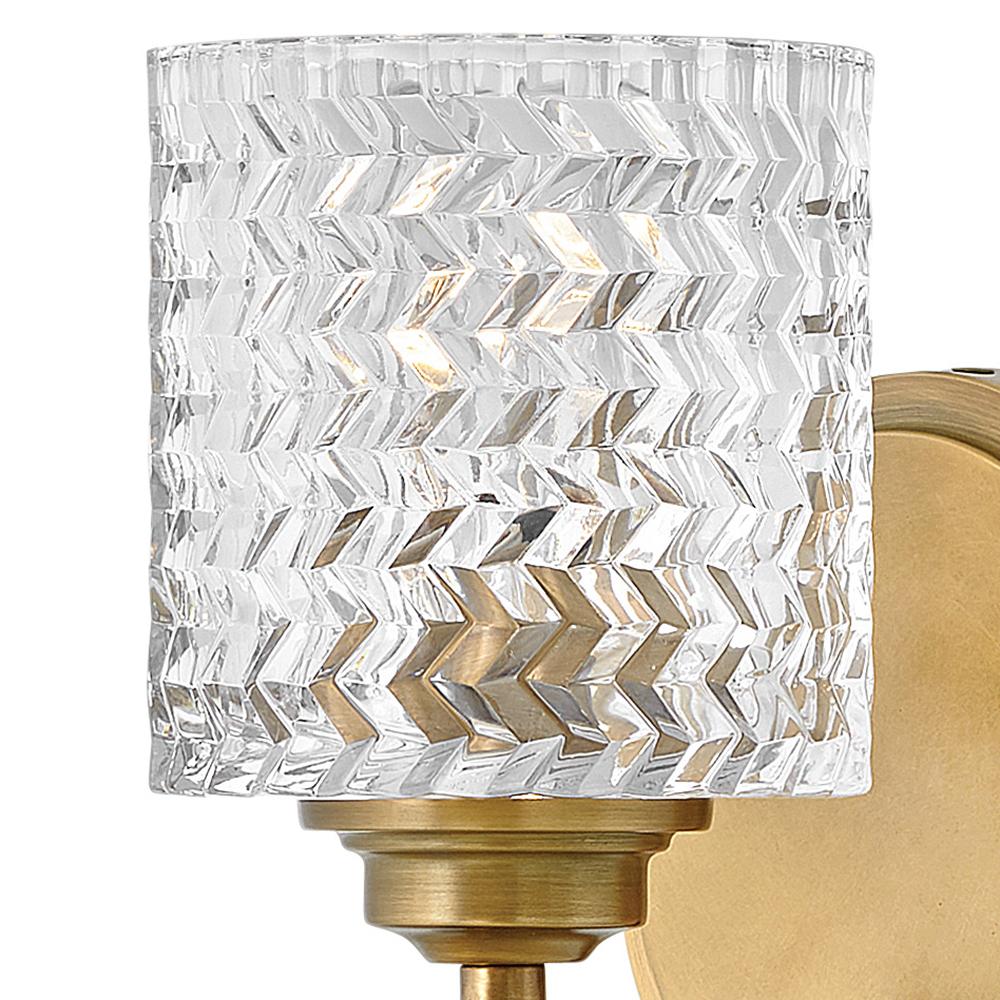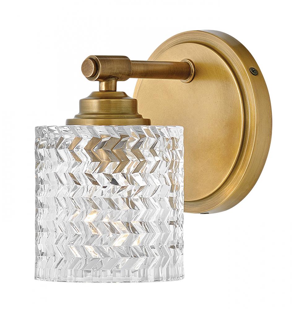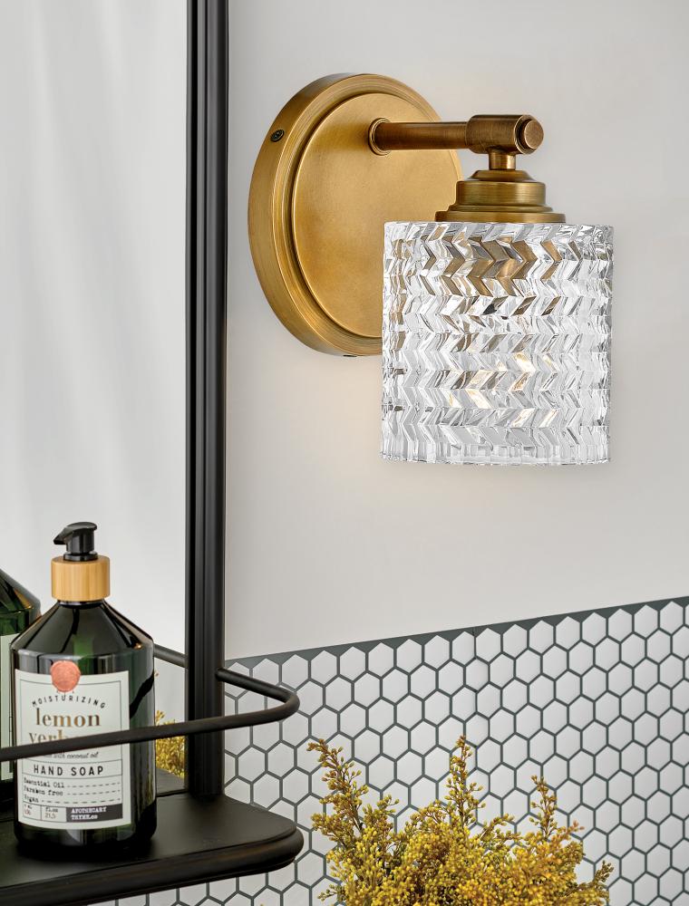 Traditional elegance with a modern edge defines Elle’s graceful design. Rich chevron cut glass provides interesting light refraction and is a dramatic focal point whether the light is on or off. The gleaming metal finish adds to the glam design that gives a touch of radiance to any space.