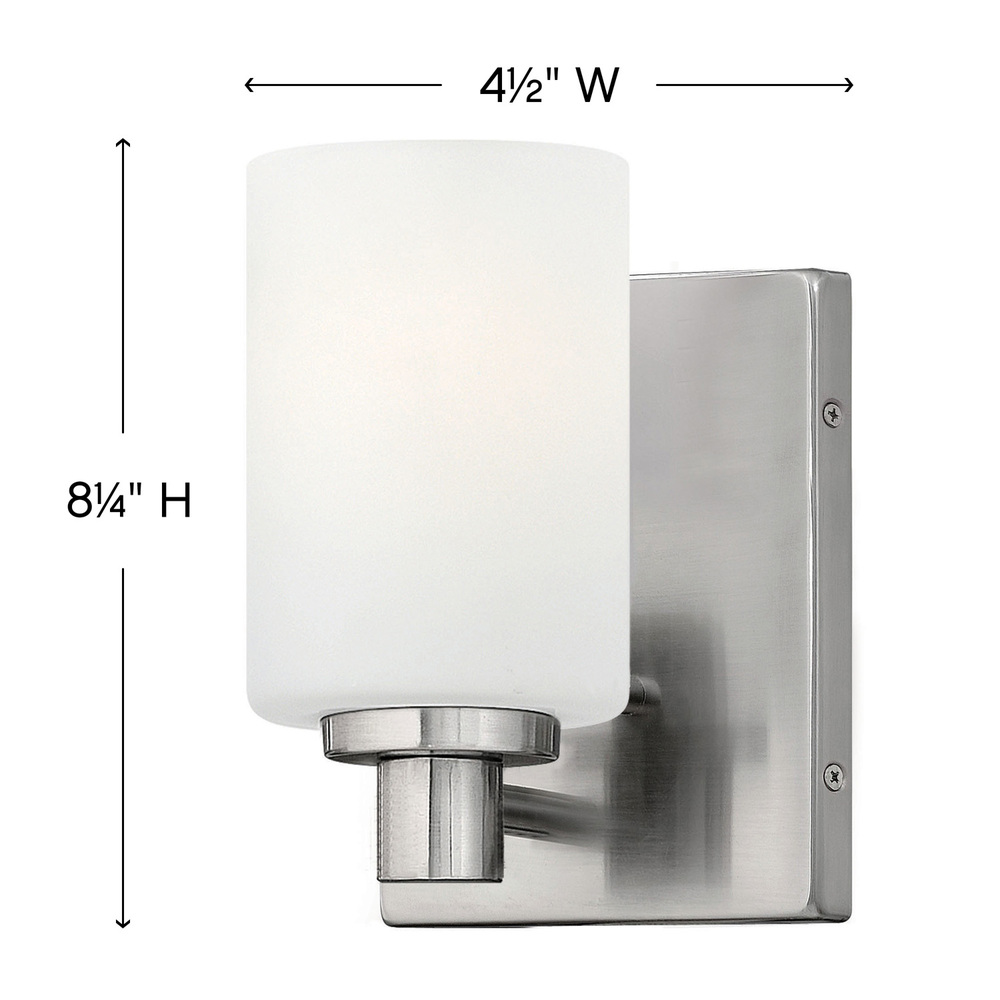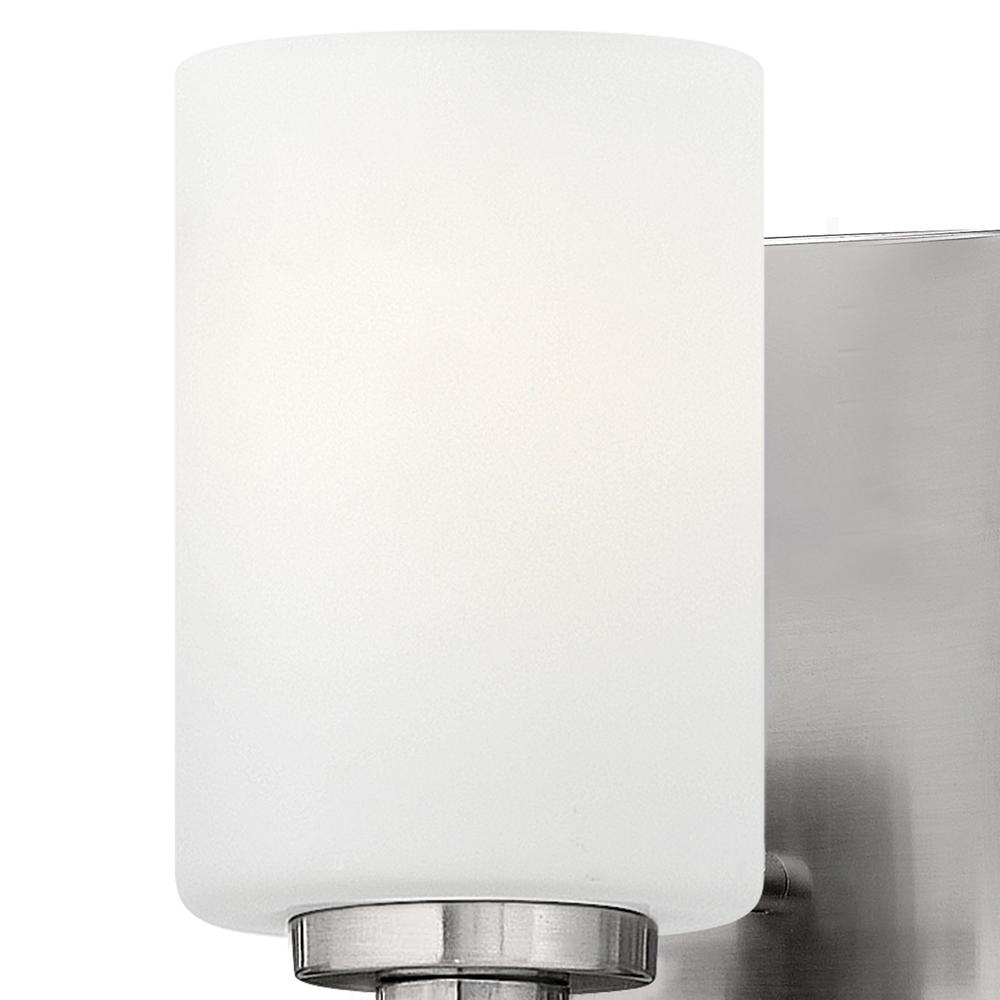 Karlie's clean design is transitional in style and will complement a variety of décor. Featuring precision die-cast cups and cylindrical, etched opal glass, it is available in Brushed Nickel and Chrome.