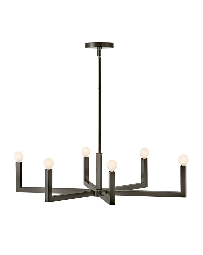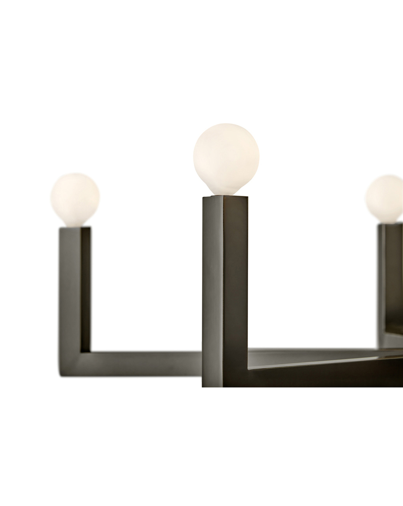 The Ezra family stunningly pairs minimalist elegance with an industrial edge. The strong square arms, sharp angles, and bold silhouette add dimensional appeal, bringing interest to dining rooms, foyers, kitchens, and beyond. Pairing Ezra with a globe-style bulb nails down the transitional, mid-century modern vibe.