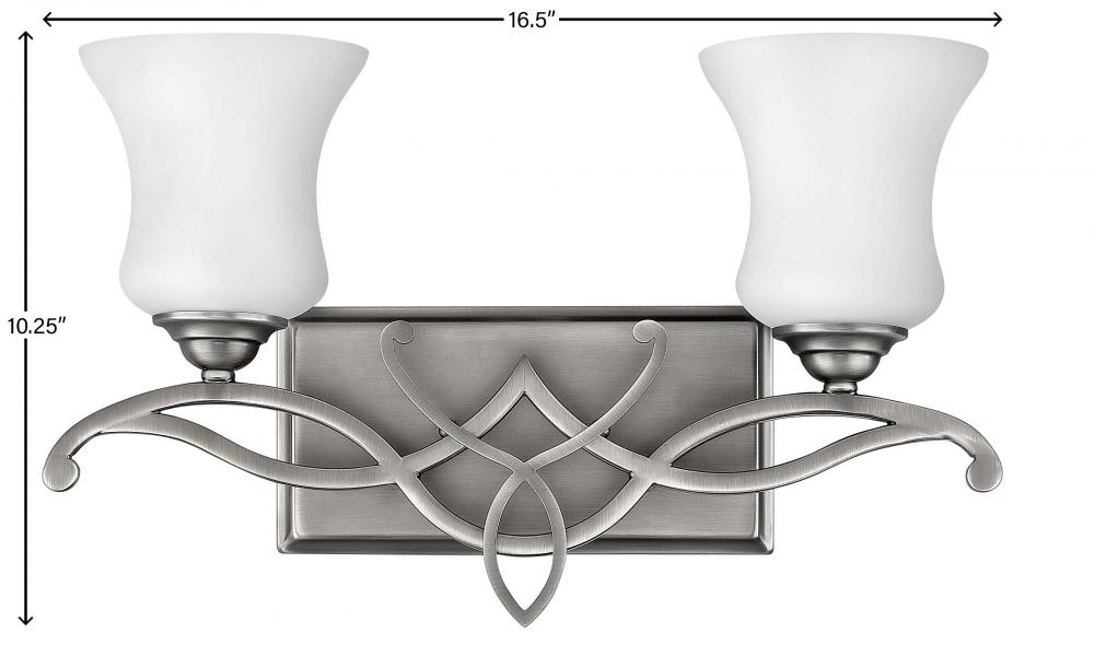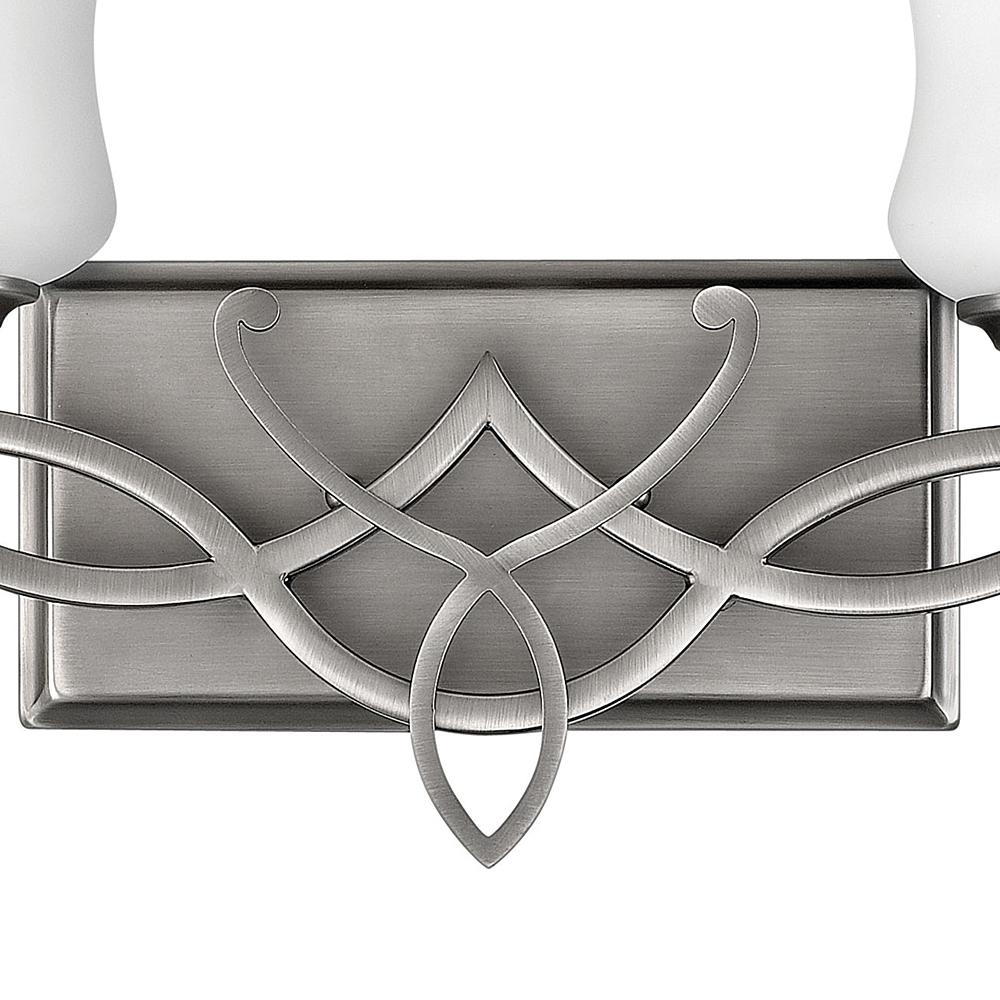 Brooke's updated traditional look features a minimalist forged scroll design in Antique Nickel and Olde Bronze that elegantly complements its etched opal glass.