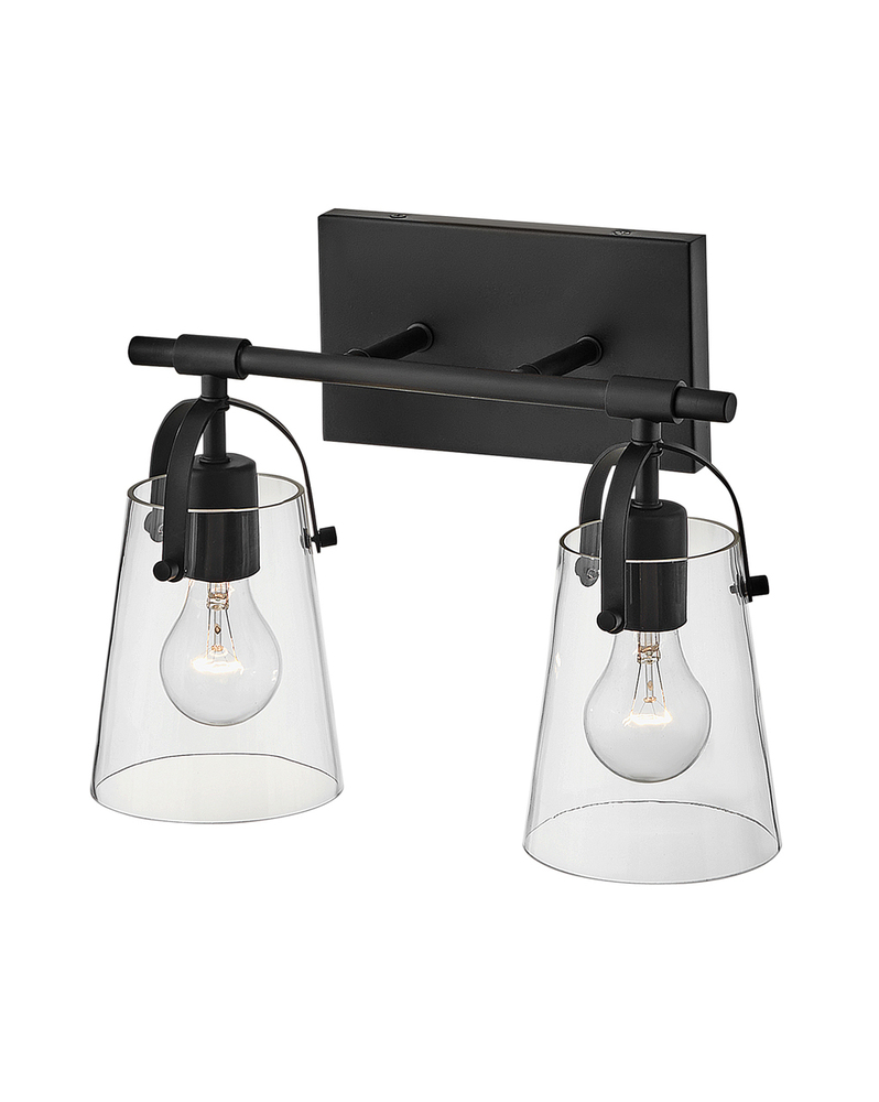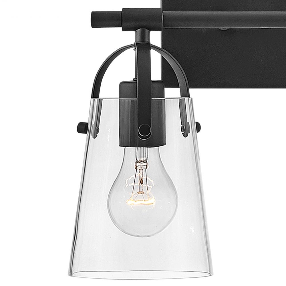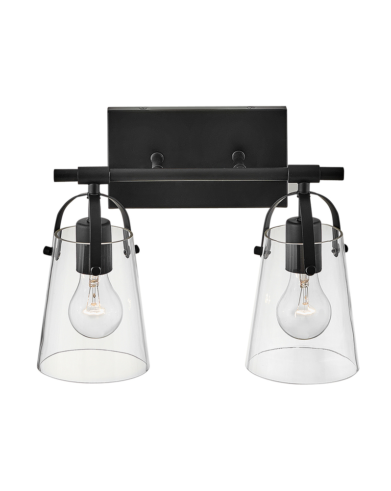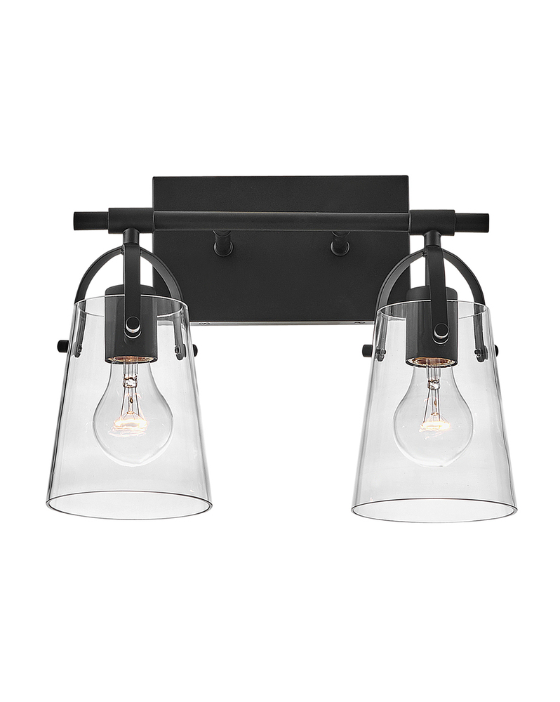 Clean and airy, Foster breathes composed simplicity into any bath space. Softly tapered glass shades suspended from arched handle prongs create a sophisticated transitional silhouette, enhanced by practical yet stylized details.