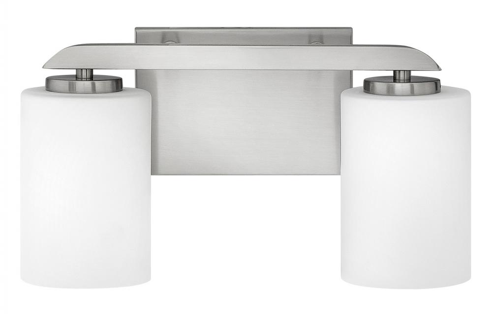 Clean and crisp, Kyra's minimalist design is anchored with a bold yet simple aesthetic. The sleek cross bar ends with a subtle curve for an element of softness. Rich finish options of Brushed Nickel or Polished Nickel complement the elegant etched opal glass.