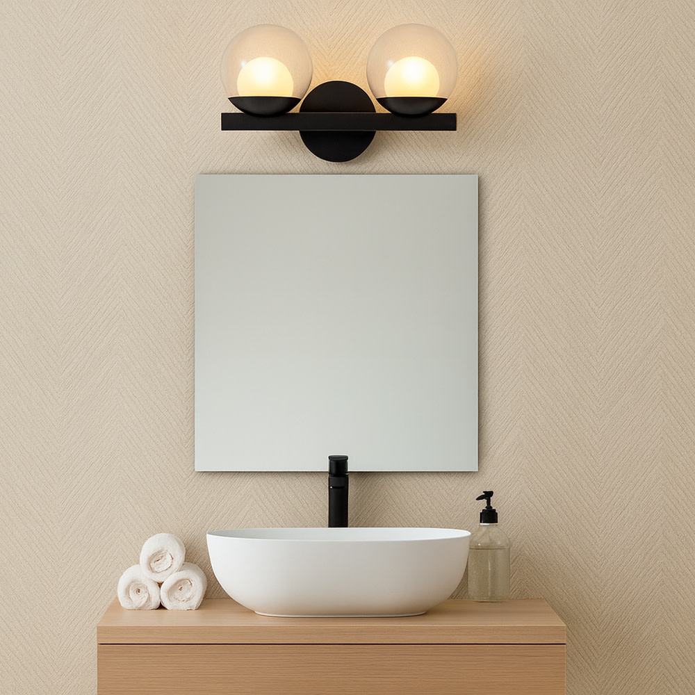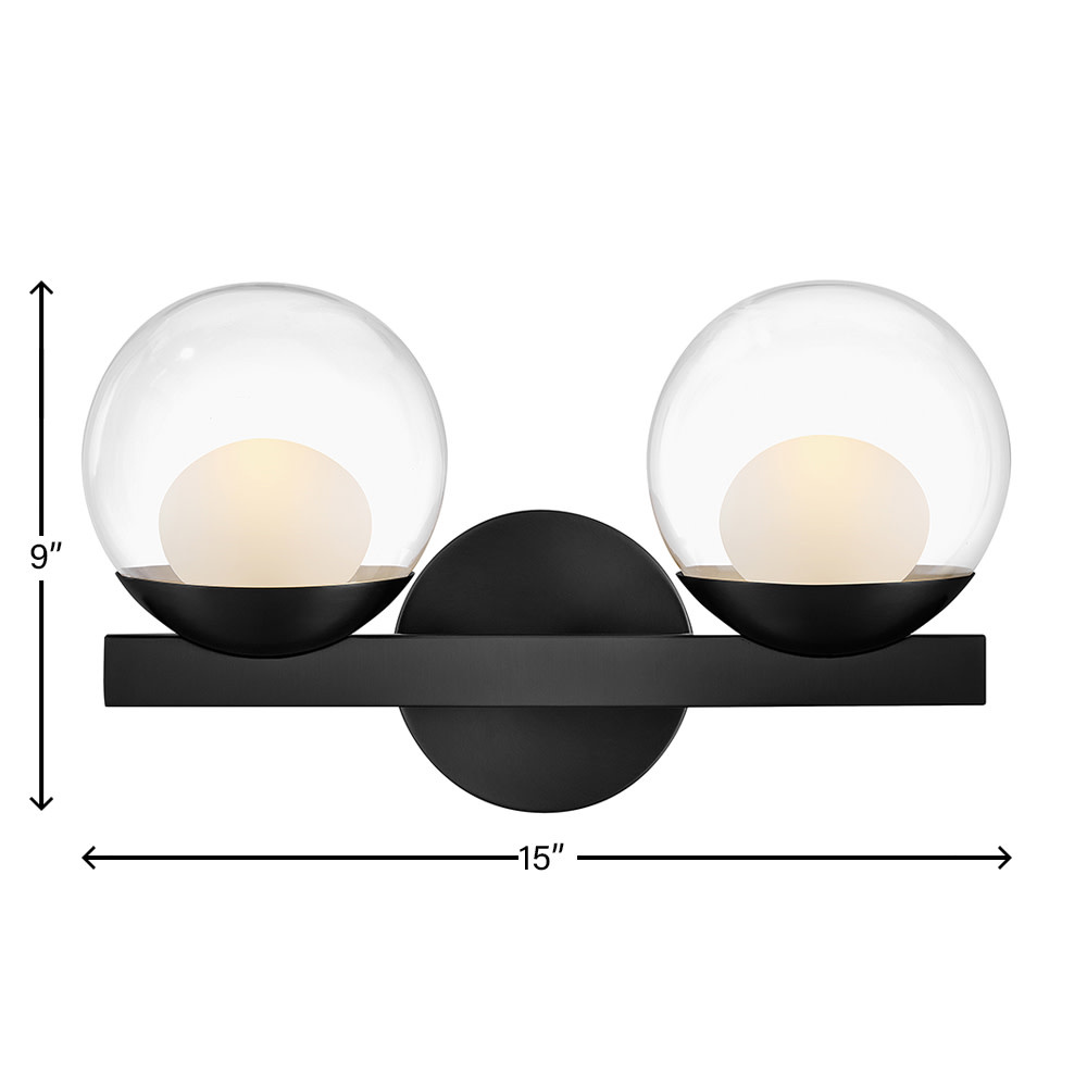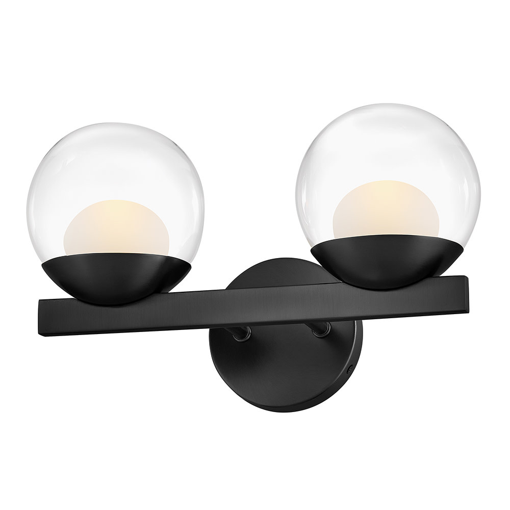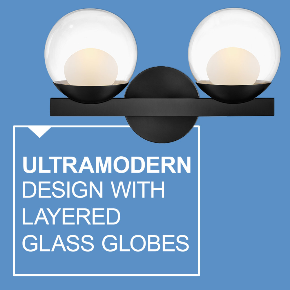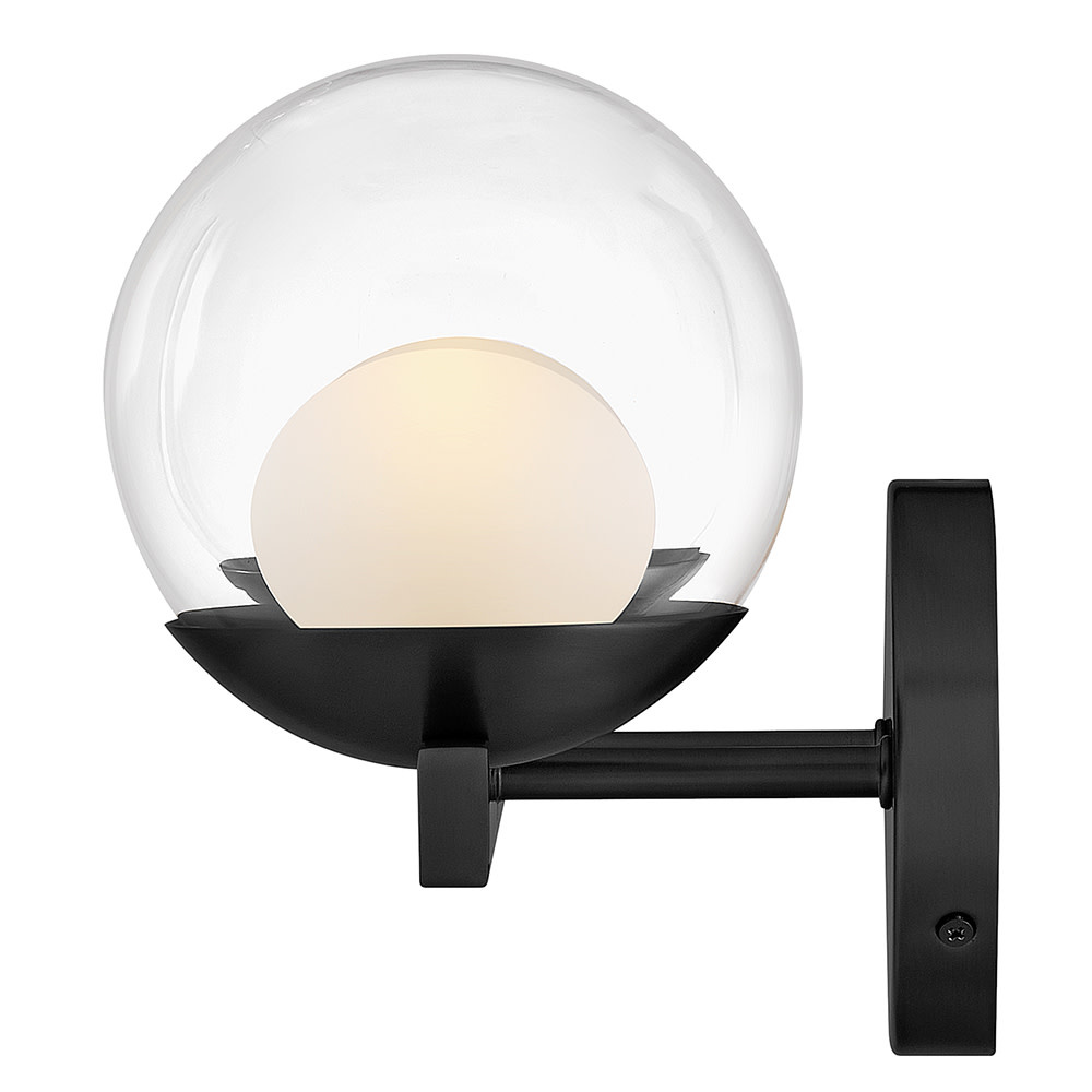 Sophisticated with an ultramodern twist, Sunni’s sleek design showcases a distinctive glass globe that artfully layers a clear glass outside with an etched white interior. A minimal backplate and frame are finished in a bold Black or luxurious Lacquered Brass finish to easily complement your space.