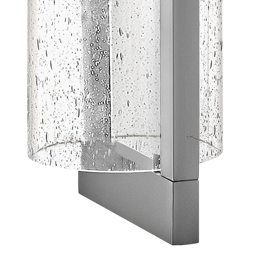 Shelter’s minimalist style in aluminum creates a chic, dramatic statement as the light from above grazes through its clear seedy glass. Shelter comes standard Dark Sky compliant.