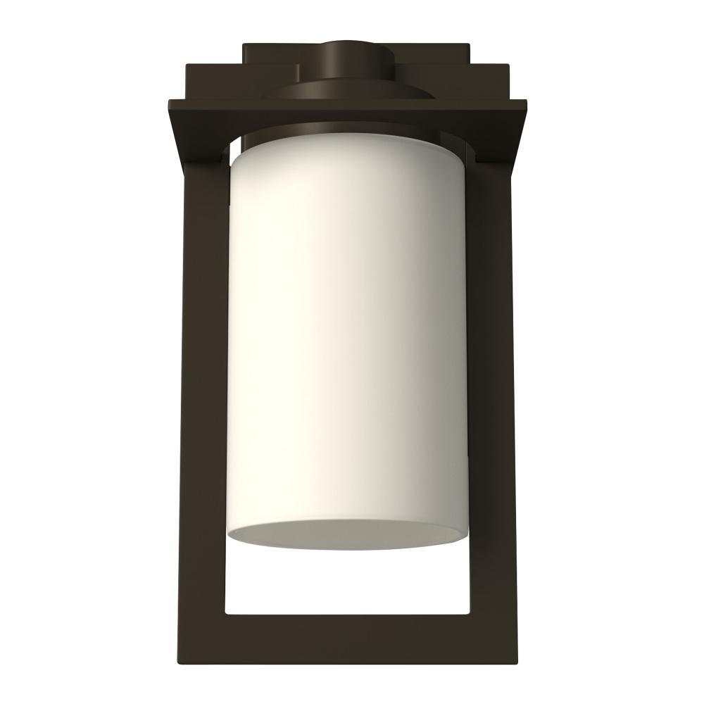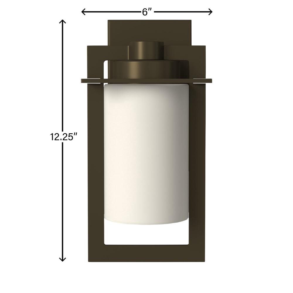 The sleek lines of Colfax feature intersecting planes of solid aluminum and a chic cylinder of etched opal glass to create a sophisticated geometric form. The die-cast aluminum construction in a Bronze finish brings an Arts & Crafts flair to the transitional design.