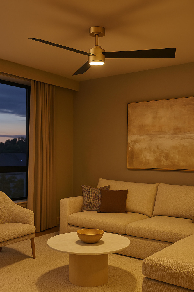 Speck’s sleek design features three wood blades in classic finishes to complement both modern and traditional settings. Its versatile damp-rated construction can enhance interior or covered outdoor living spaces. Equipped with a 6-speed DC motor that is WiFi enabled and ready to connect right out of the box. Operated by the HIRO control or WiFi compatible with the Hinkley App.