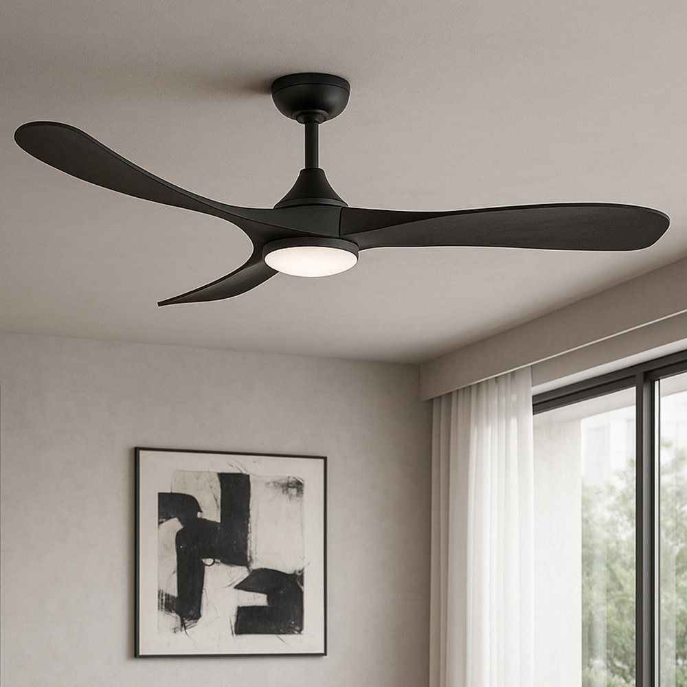 Sophisticated and distinct, Swell Illuminated perfectly sets the scene in contemporary spaces without sacrificing functionality - featuring integrated LEDs complemented by a variety of classic finish combinations. A versatile, damp-rated design makes Swell perfect for both interior and outdoor settings. Equipped with a 6-speed DC motor that is WiFi enabled and ready to connect right out of the box. Operated by the HIRO control or WiFi compatible with the Hinkley app.