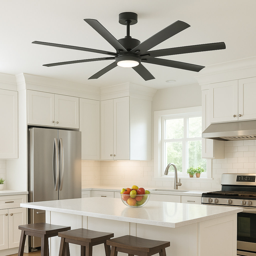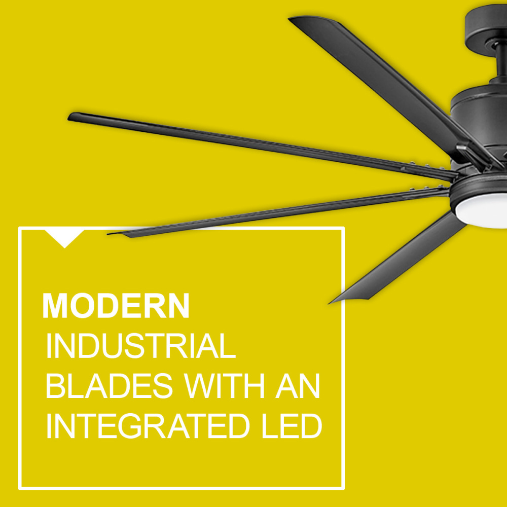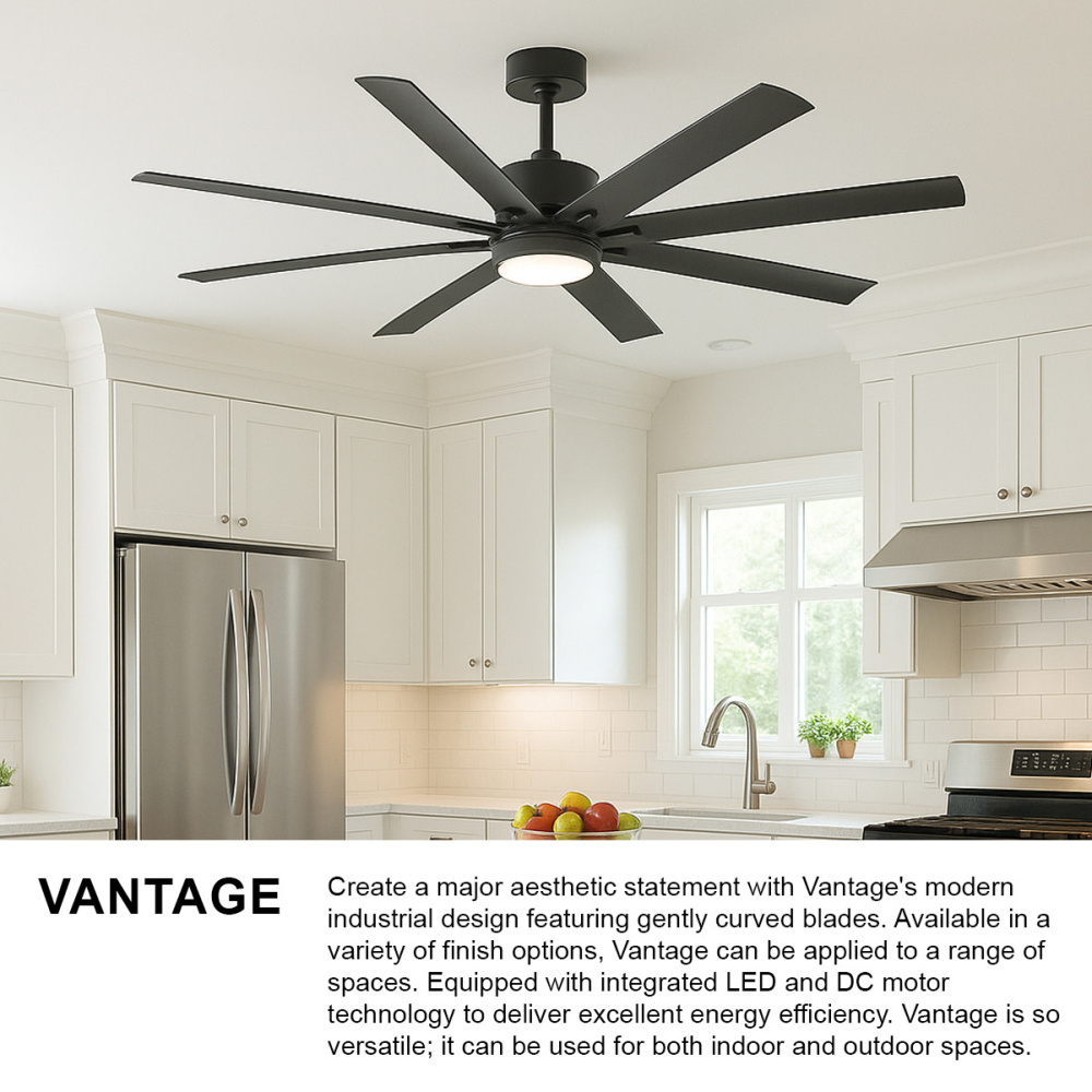 Create a major aesthetic statement with Vantage's modern industrial design featuring gently curved blades. Available in a variety of finish options, Vantage can be applied to a range of spaces. Equipped with integrated LED and DC motor technology to deliver excellent energy efficiency. Vantage is so versatile; it can be used for both indoor and outdoor spaces.