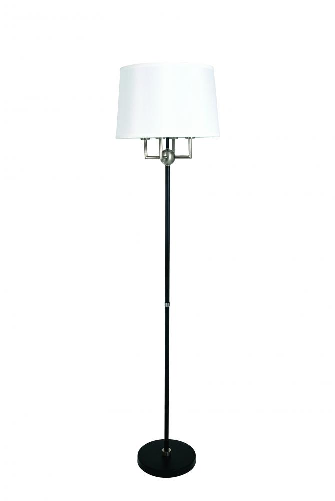 Alpine 4 light cluster black/satin nickel floor lamp with white silk softback shade