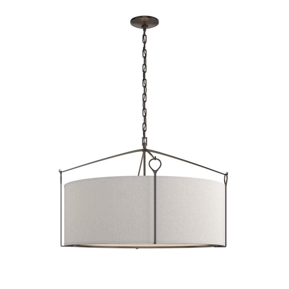 Clean lines and generous light output—this Large Bow Pendant has simple lines and with the versatility for a variety of settings and styles. Classic hook and loop details suspend the shade, while a lightly curved bottom glass diffuser softly disperses the light. Standard and Tall sizes also available.