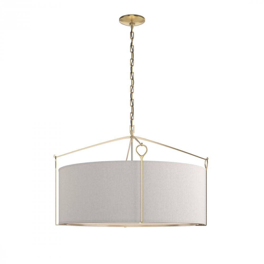 Clean lines and generous light output—this Large Bow Pendant has simple lines and with the versatility for a variety of settings and styles. Classic hook and loop details suspend the shade, while a lightly curved bottom glass diffuser softly disperses the light. Standard and Tall sizes also available.