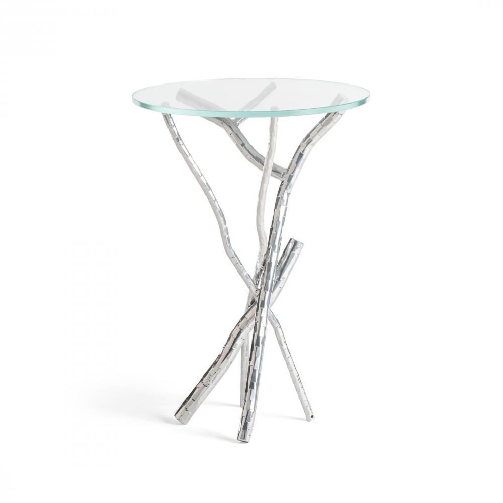 Every facet on every branch is individually hammered in our forge to create a unique sculptural base that supports a tempered glass top. The Brindille Accent Table is available in all standard finishes. It is the perfect side or accent table for an organic, handcrafted, sculptural statement in any setting.