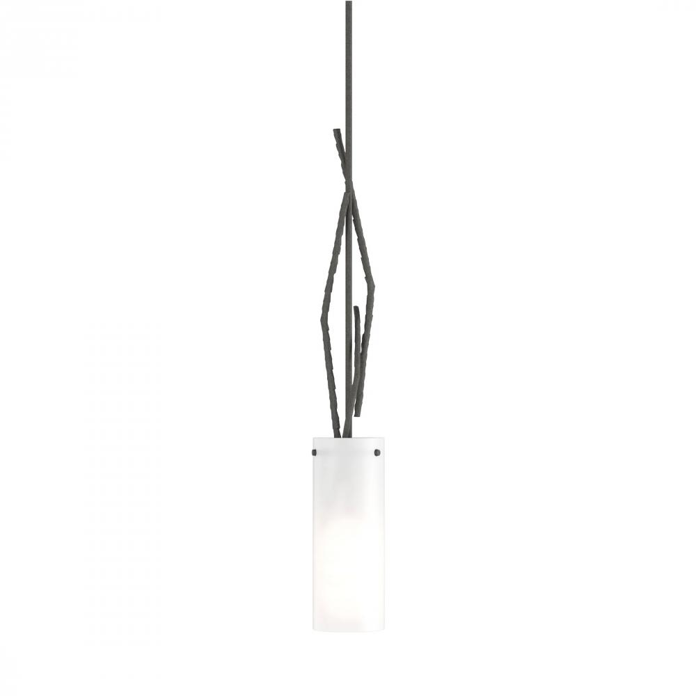 Sylvan meets steel with multi-faceted twigs forged from red-hot round bar stock hammered for texture and shape by our Vermont artisans. The steel sculpture branches up from the sleek, glass tube and twines around the adjustable downrod.