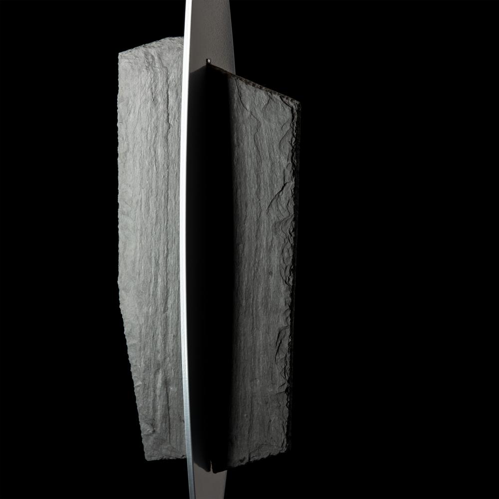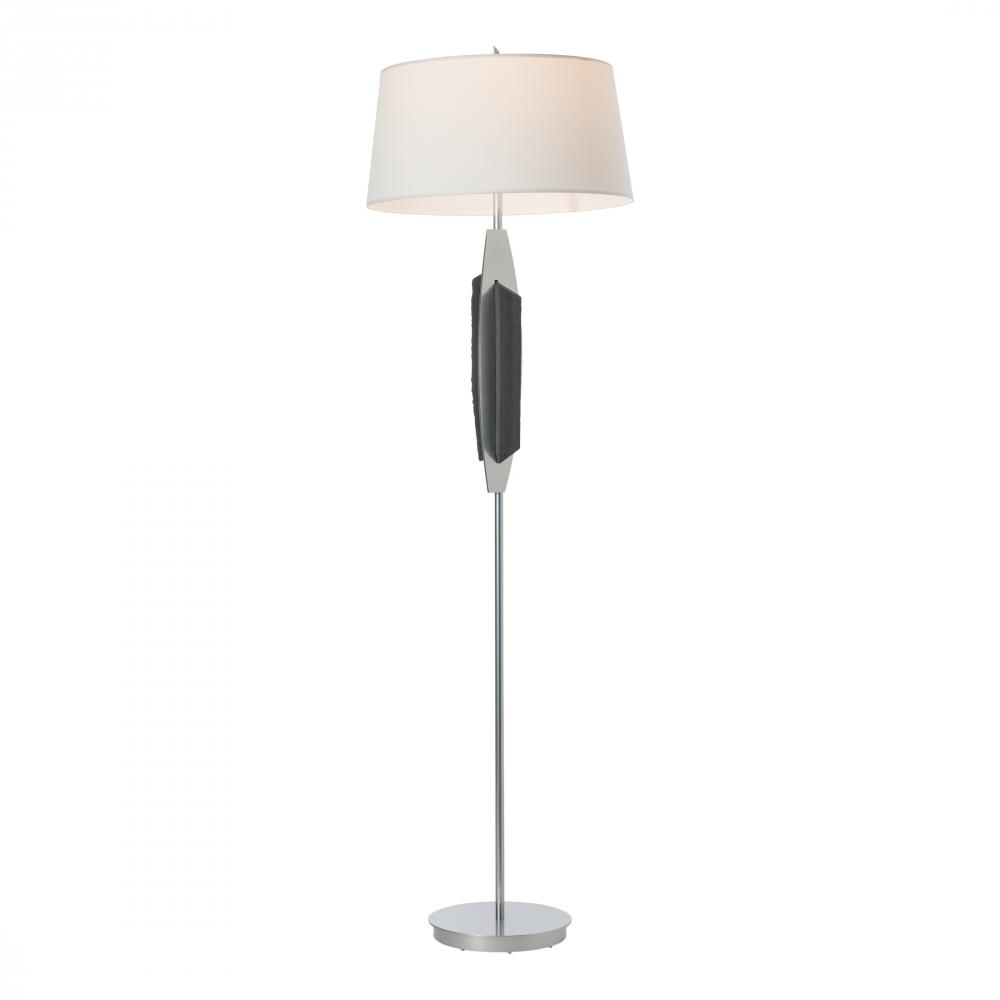 Hand-split black slate from a nearby quarry is the central focus of the Cambrian Floor Lamp by HF design team leader Paul Marr Hilliard. An unexpected piece of Vermont's natural environment with variable texture transpierces a shaped metal plate affixed to the lamp's column. A perfectly stylized finial tops off the Cambrian, adding to its allure.