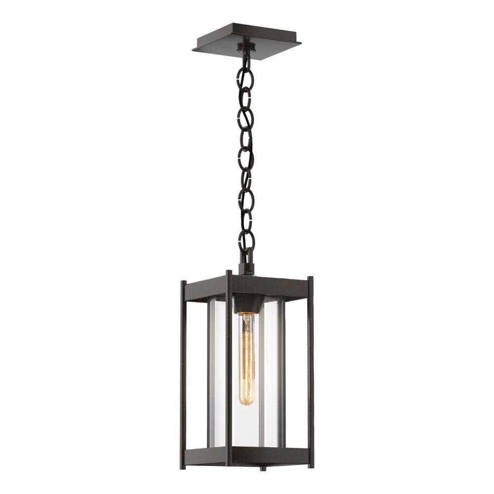 The Cela Outdoor Lantern is a contemporary pendant design that will add a touch of elegance to any space. The strong rectilinear lines of the aluminum frame hold a well-proportioned cylinder of blown glass. This chain-hung ceiling pendant is perfect for outdoor spaces and is offered in any of six Coastal Outdoor Finishes.