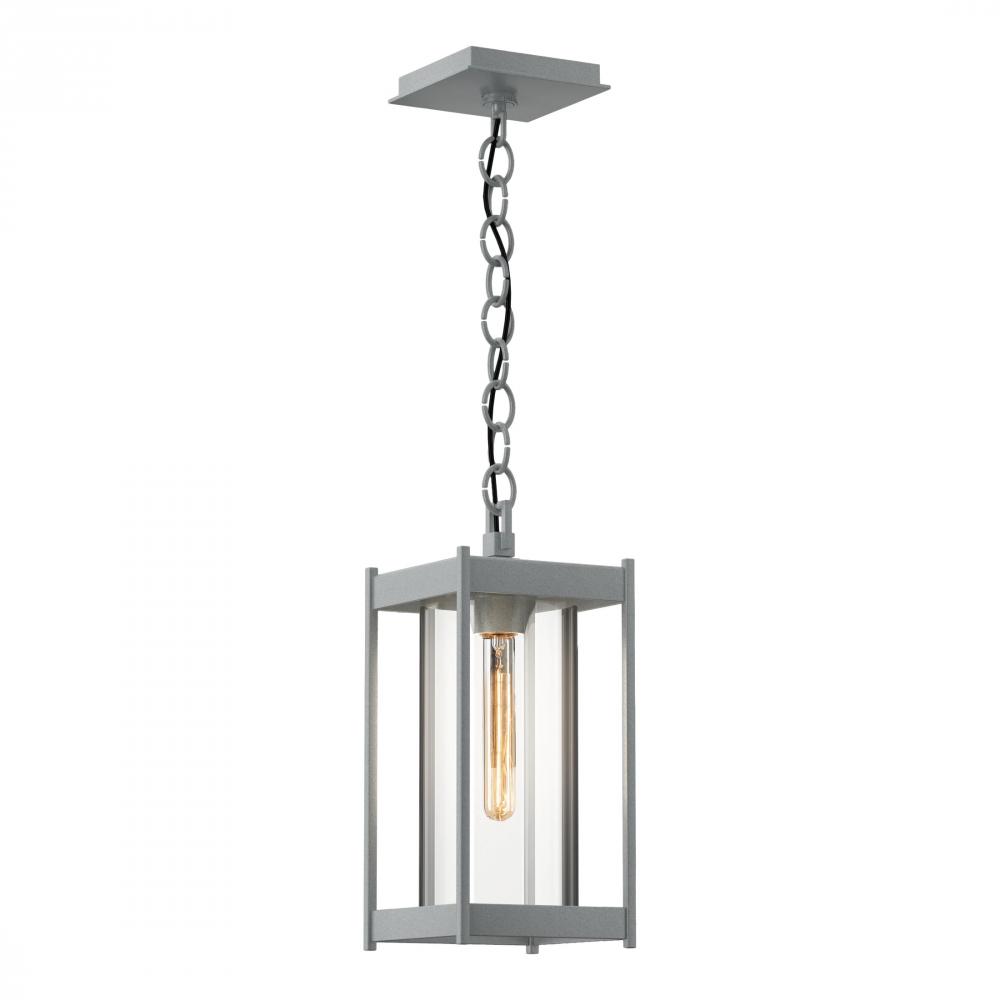 The Cela Outdoor Lantern is a contemporary pendant design that will add a touch of elegance to any space. The strong rectilinear lines of the aluminum frame hold a well-proportioned cylinder of blown glass. This chain-hung ceiling pendant is perfect for outdoor spaces and is offered in any of six Coastal Outdoor Finishes.