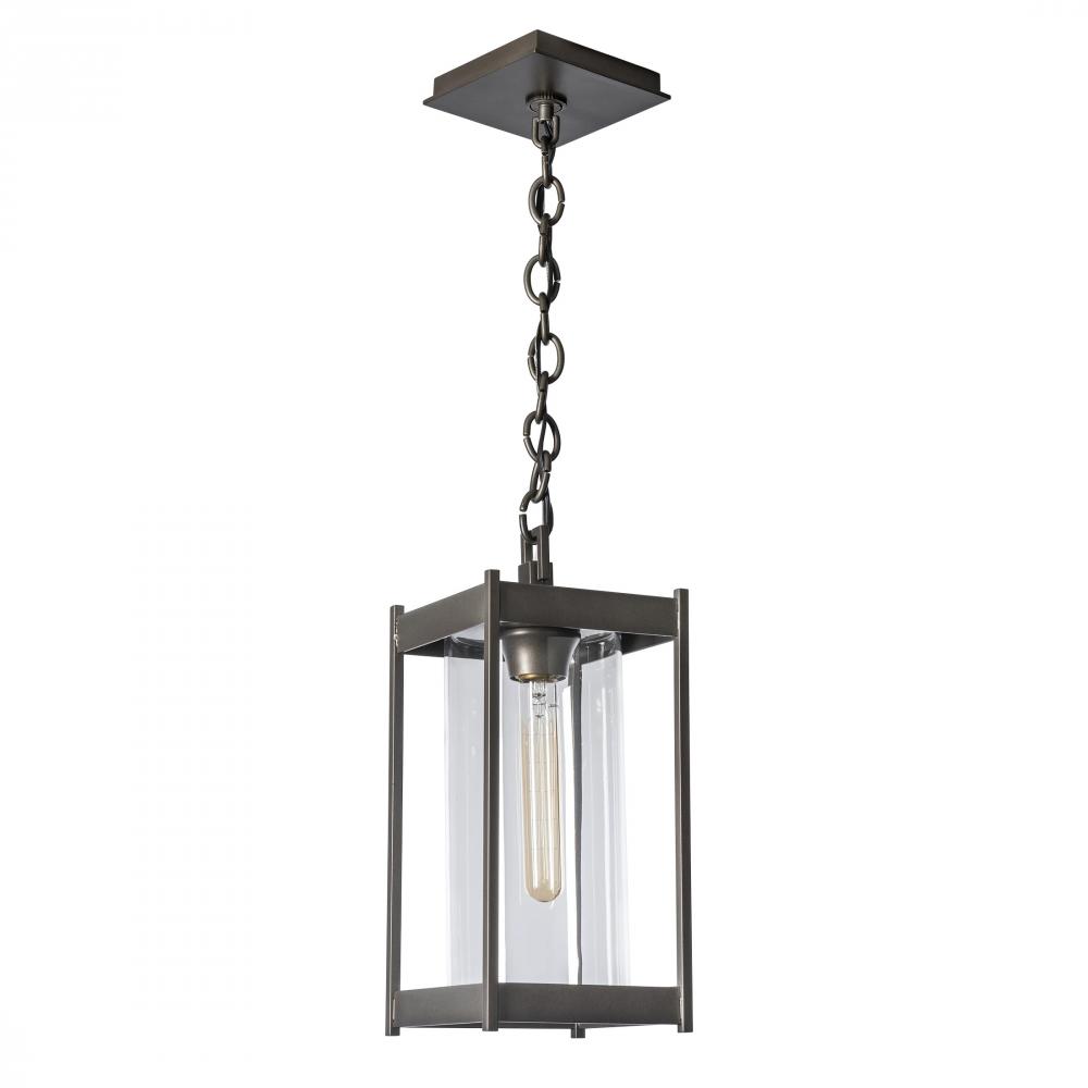 The Cela Outdoor Lantern is a contemporary pendant design that will add a touch of elegance to any space. The strong rectilinear lines of the aluminum frame hold a well-proportioned cylinder of blown glass. This chain-hung ceiling pendant is perfect for outdoor spaces and is offered in any of six Coastal Outdoor Finishes.