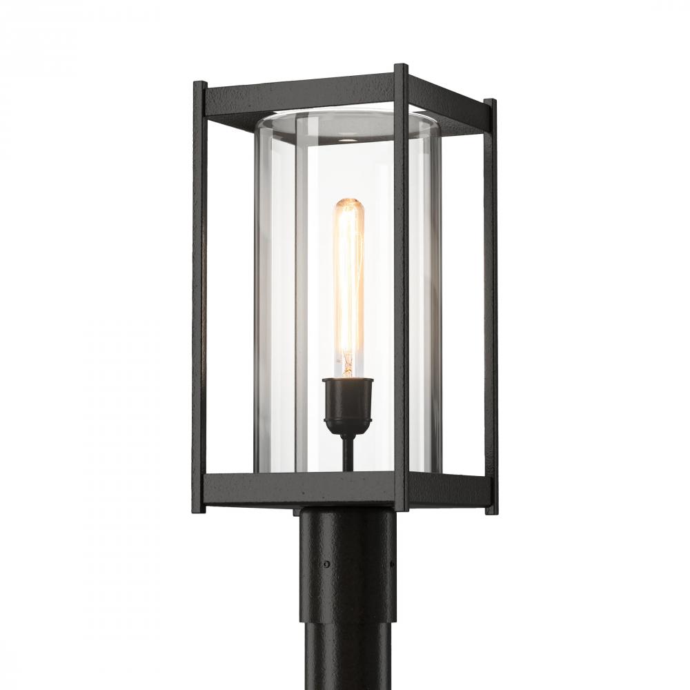 Greet guests with lighting that enhances their safe footing with functional outdoor lighting. The Cela Outdoor Post Light is a contemporary re-design of a classic lantern. A strong, geometric aluminum frame holds a well-proportaioned cylinder of blown glass within. A great first impression, and for garden or recreational pathways, the Cela will provide light that is both protective and welcoming. Available in 6 Coastal Outdoor Finishes.