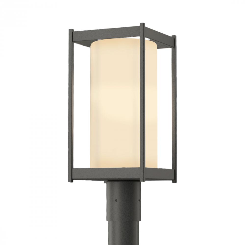 Greet guests with lighting that enhances their safe footing with functional outdoor lighting. The Cela Outdoor Post Light is a contemporary re-design of a classic lantern. A strong, geometric aluminum frame holds a well-proportaioned cylinder of blown glass within. A great first impression, and for garden or recreational pathways, the Cela will provide light that is both protective and welcoming. Available in 6 Coastal Outdoor Finishes.