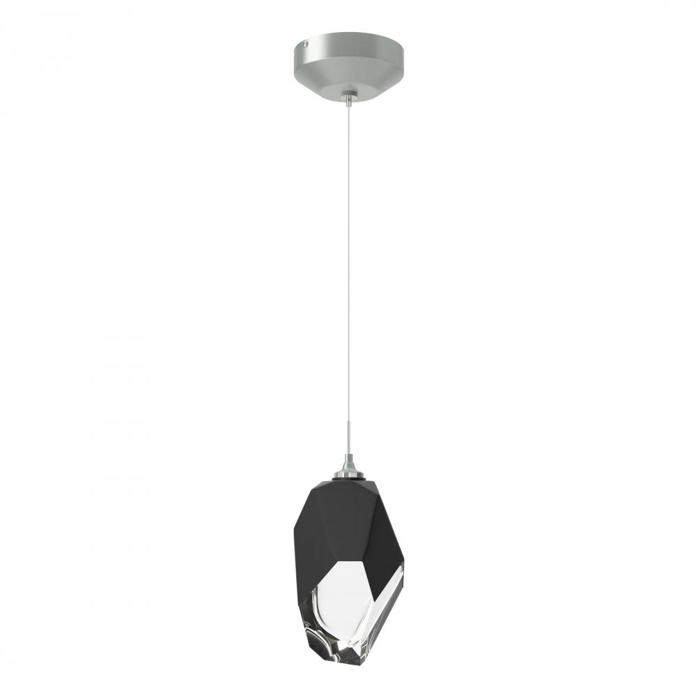 The Chrysalis 1-Light Large Crystal Pendant is a low-voltage fixture that features a large, handcrafted faceted glass crystal suspended from a small round canopy. A thick, clear layer of glass is encased in an outer cocoon of hand-blown, colored glass (matte black or white). Hand-polished like a gemstone, the lower portion of the outer layer of glass is removed to reveal the inner crystal clear layer below and is lit from within.