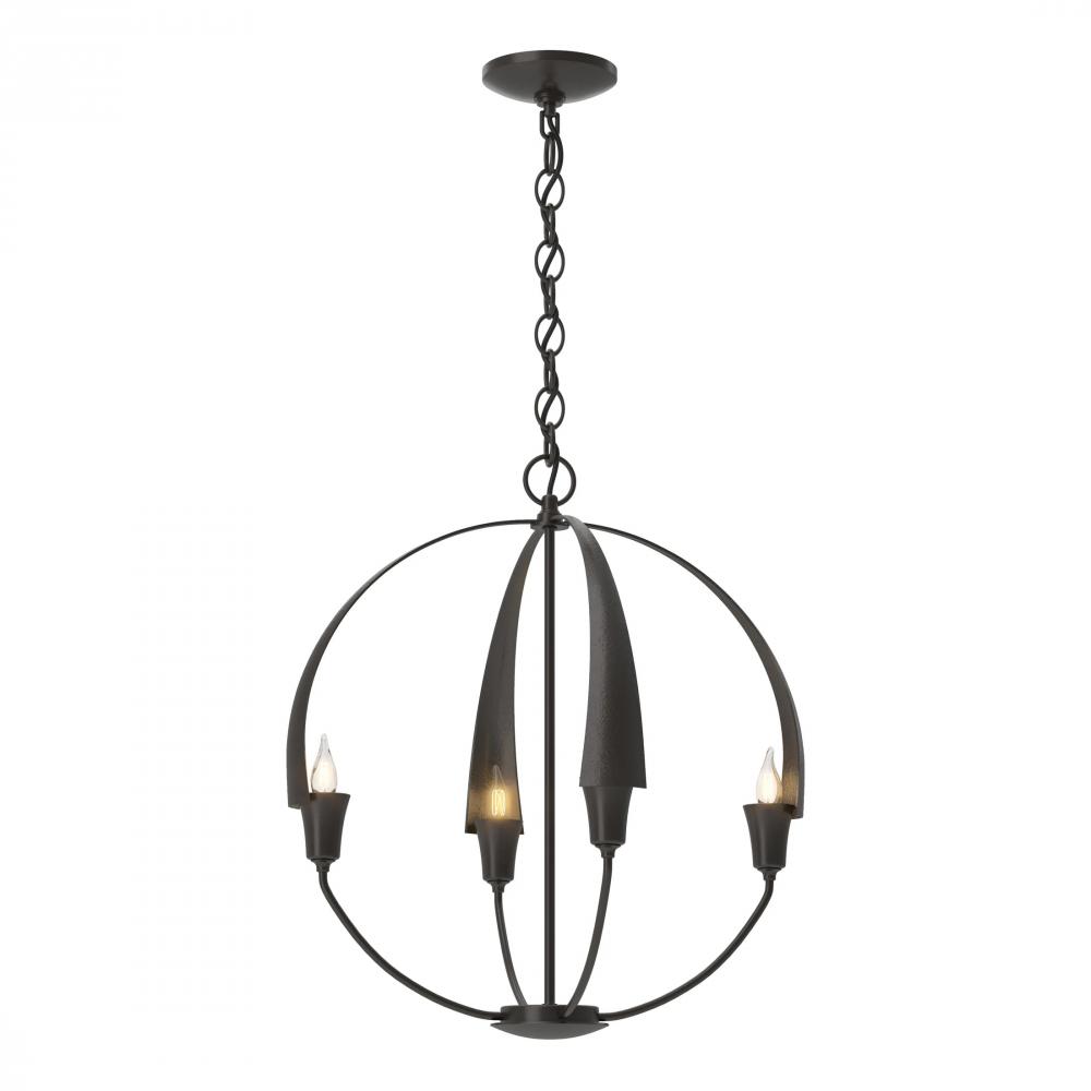 There's no need to make a choice between form and function - as part of the Cirque Collection, this chandelier delivers both. Four hand-forged, tapered steel petals merging at the sculpture's apex set the stage for our re-interpretation of the classic orb chandelier.