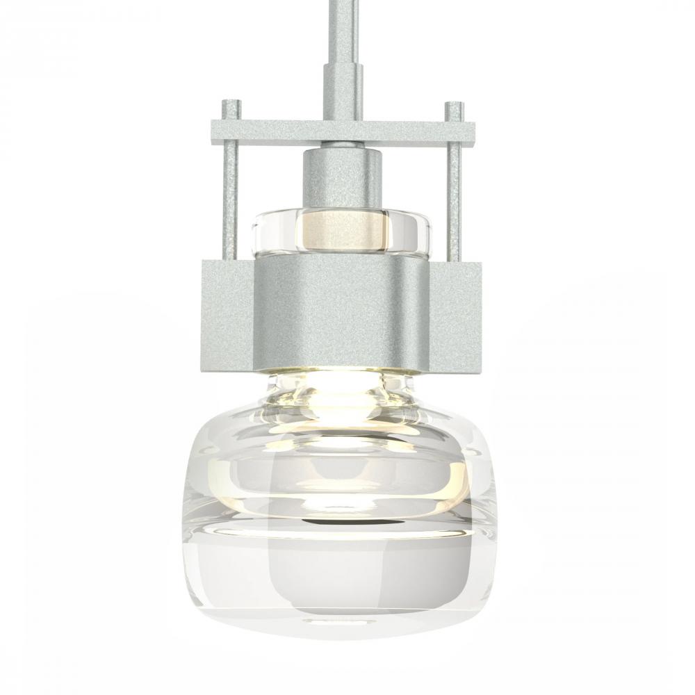 A heavy, steel cuff embraces and secures the stunning, thick blown-glass of this large Cuff Pendant. This is a jumbo version with a diameter of 7.5 to bring light and style to any room.