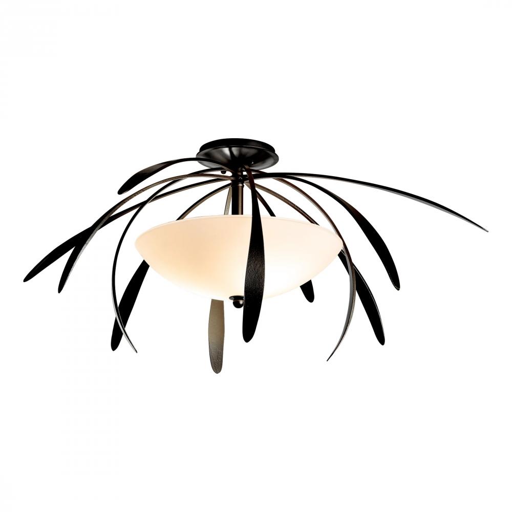 A new entry to the acclaimed Dahlia Collection, this 2021 Dahlia Semi-Flush is over 32 in diameter and almost 14 in height. With its hand-forged, trademark petals, the glass inverted coppola serves as a diffuser for the light within.