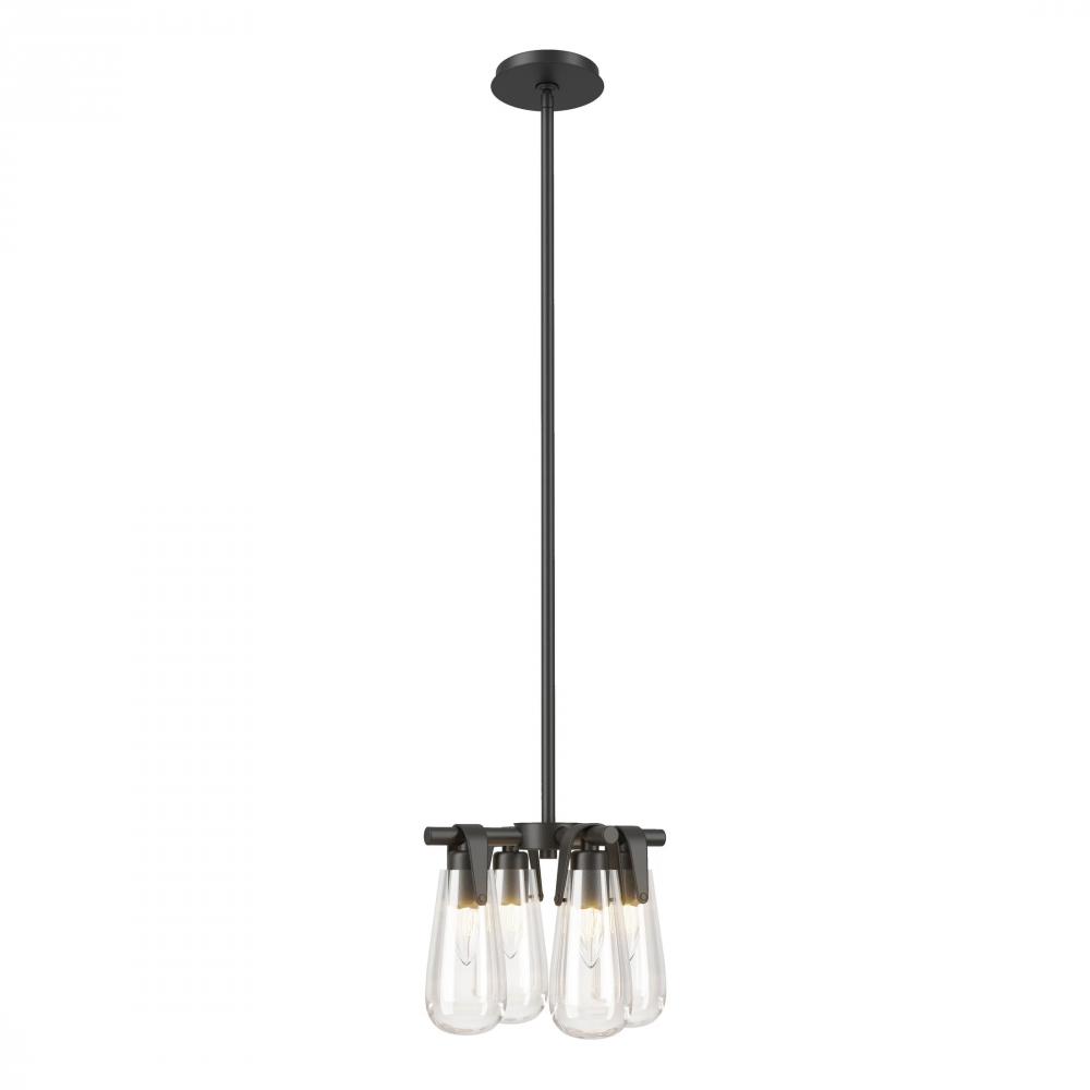 This 4-light, cross-bar fixture offers the versatility to serve as a semi-flush or pendant, depending upon the space's design. Named for the Greek goddess of dawn, the Eos glass resembles the early morning dewdrop. With downward-facing light, this Eos Semi-Flush or Pendant will brighten its surroundings. Available in all standard finishes.