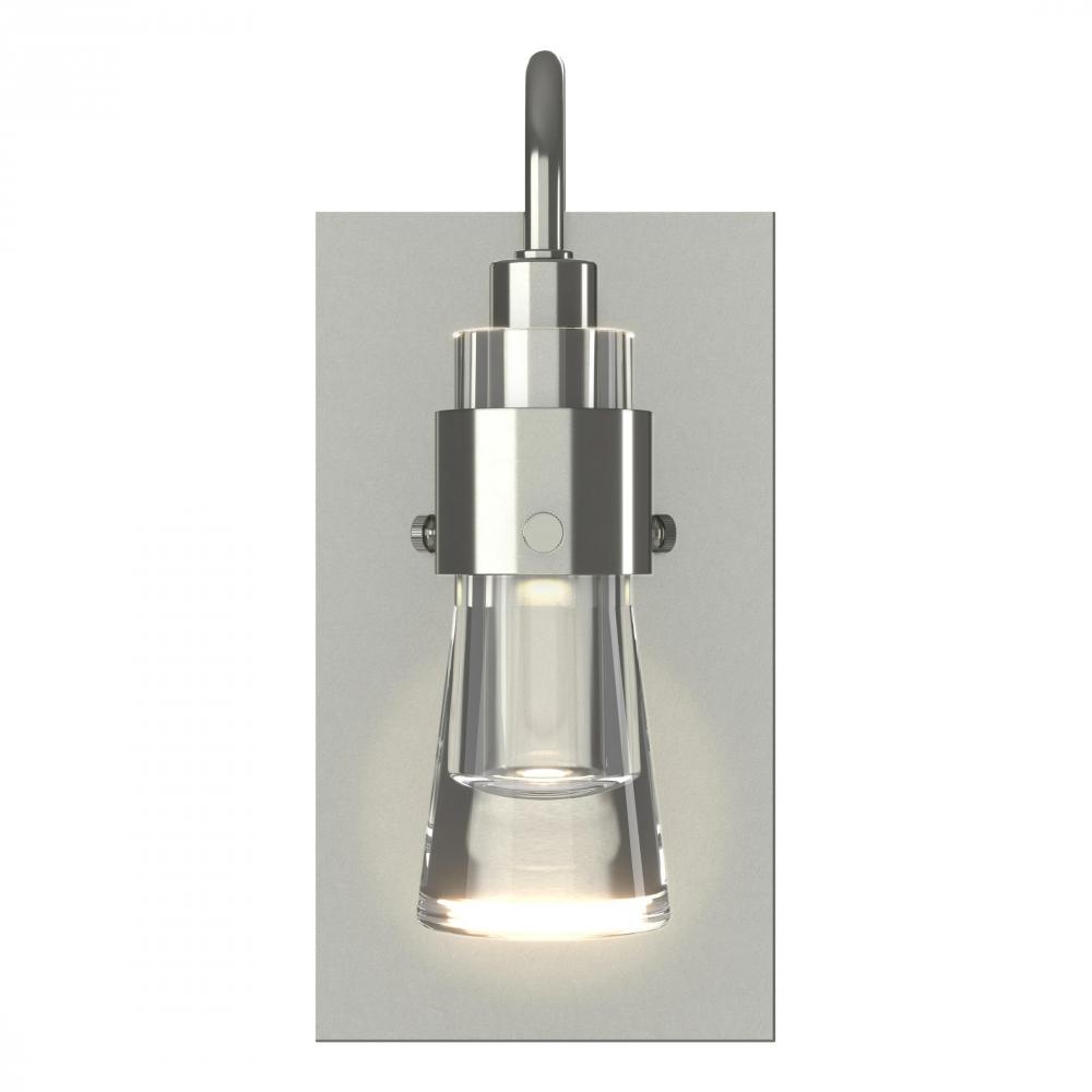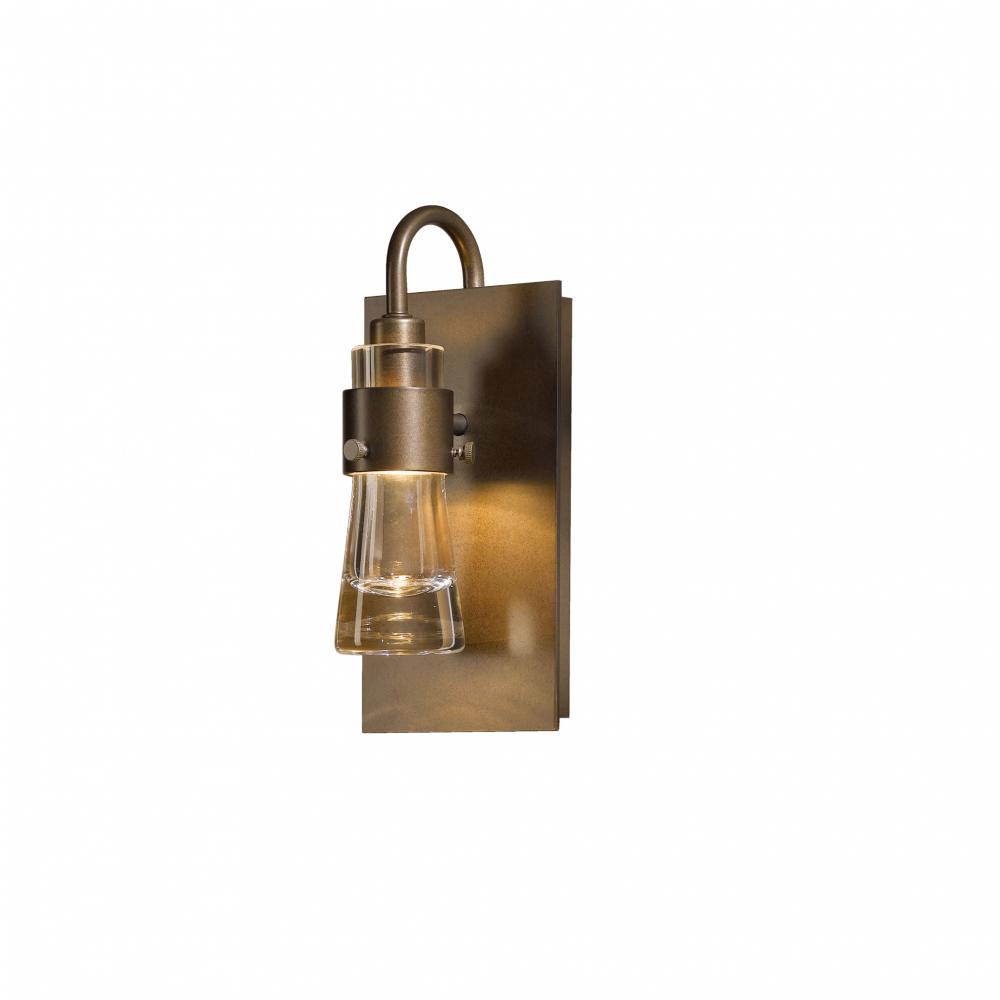 Inspired by the flat-bottomed Erlenmeyer flask, this sconce provides the catalyst for your design chemistry. The thick, clear or colored blown-glass flask is encircled by a handcrafted steel collar. Formed by Vermont artisans and offered in multiple finishes.