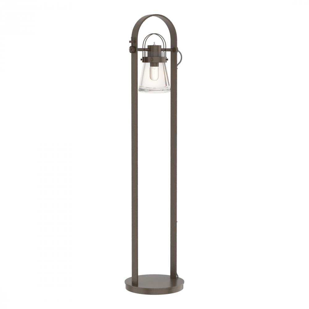 Inspired by the flat-bottomed Erlenmeyer flask, this floor lamp has life beyond the lab. With the handcrafted steel collar encircling the thick blown-glass flask, it's an industrial design with an infused steampunk feel.