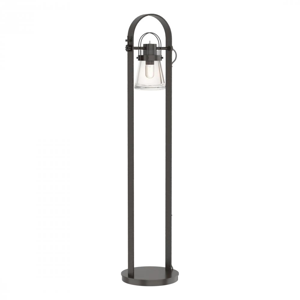 Inspired by the flat-bottomed Erlenmeyer flask, this floor lamp has life beyond the lab. With the handcrafted steel collar encircling the thick blown-glass flask, it's an industrial design with an infused steampunk feel.