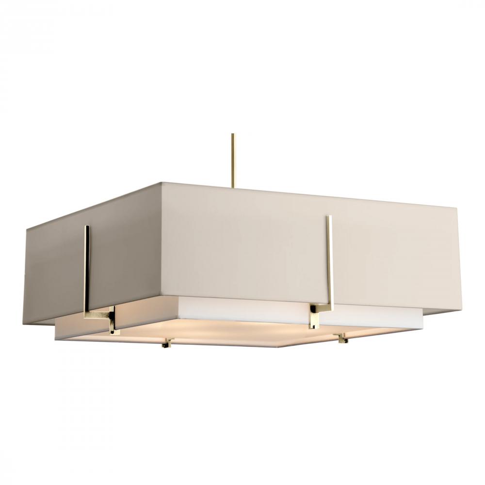 The double-shade design housing four bulbs in this large, square pendant delivers the sleek, clean and minimalistic elegance the Exos Collection is known for. Concentric shades are cradled by steel bars.