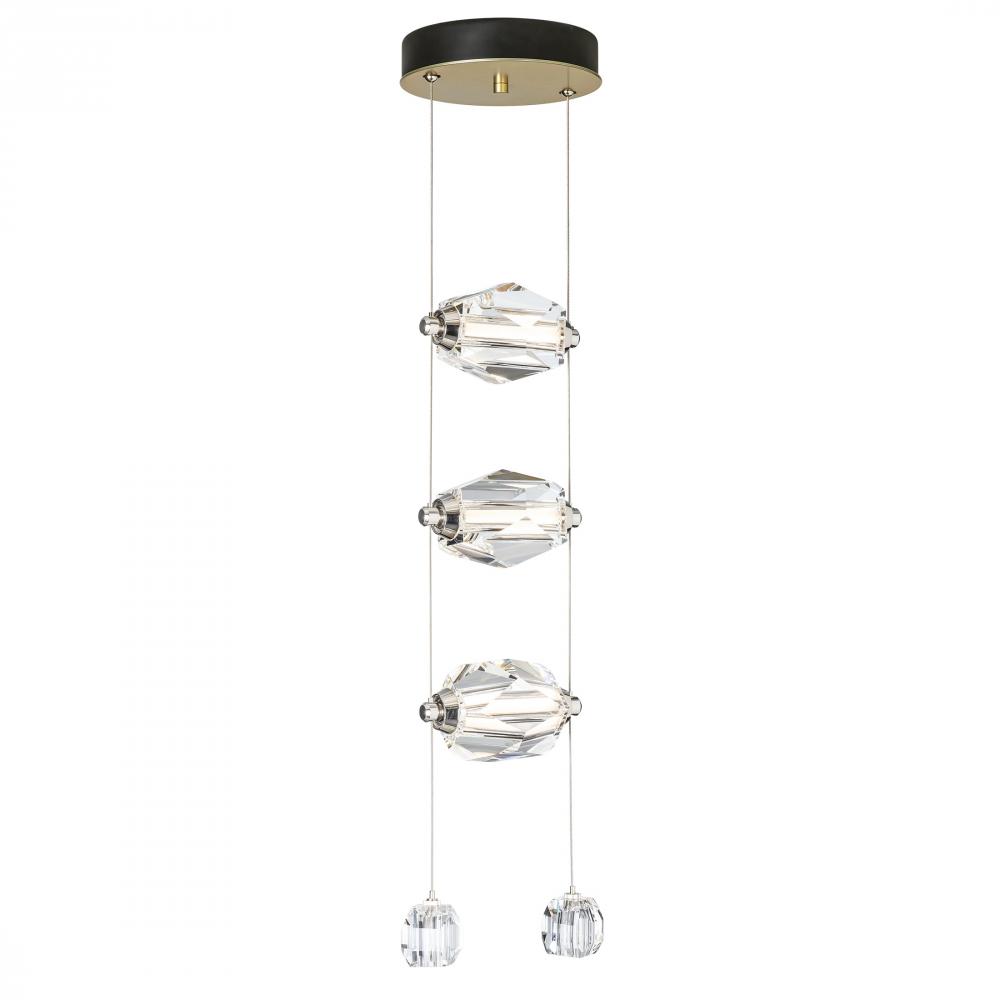 Simply beautiful. The Gatsby 3-Light LED Pendant features three, large crystals positioned horizontally between two low-voltage cables that power the LED array within. Two smaller crystals serve as endpoints for each cable, weighting them while delivering a luxurious element all the while.