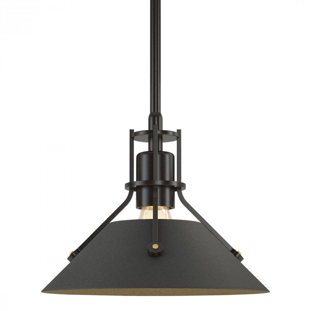 Our Henry Mini Pendant with its brass-riveted, spun-metal shade and stark design delivers strong industrial aesthetics. A close look will reveal a level of craftsmanship beyond the norm. Handcrafted by artisans here at our Vermont forge each piece is unique.